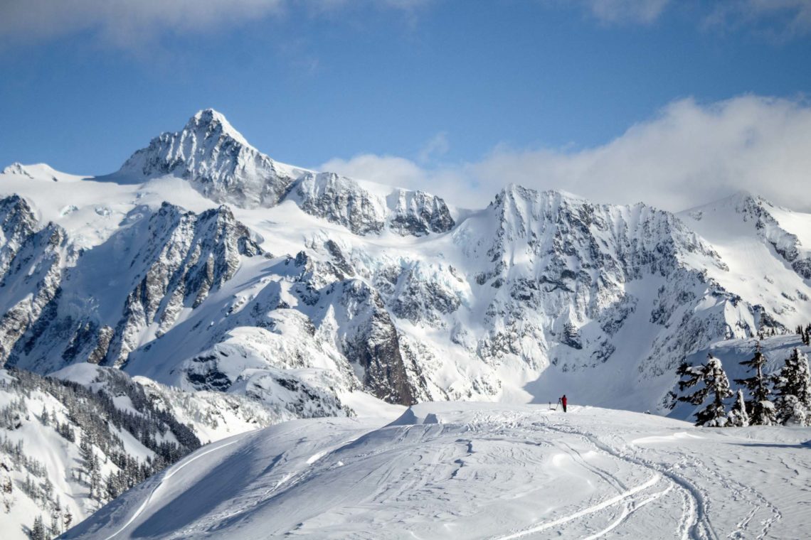 But let’s talk about human tracks. Most likely you’ll be hiking on normal foot paths, packed down by snowshoers and also by boot packing. However, in an area like Artist Point, you may see more tracks going in many directions. The narrow, shallower tracks are likely those created by people walking uphill on skis (backcountry skinning). Be careful not to step into these whether you’re on snowshoes or by boot. These tracks are specifically made by skiers to efficiently travel through the mountain and without large flotation that skis (and split boards) provide, you’ll likely sink deep. Try finding a path that matches the footwear you have! Likewise, if you’re just using boots (and likely post-holing, or sinking deep for each step), try staying off the snowshoe tracks. This way, everyone has their own lane of travel and random sink holes won’t be a hazard.