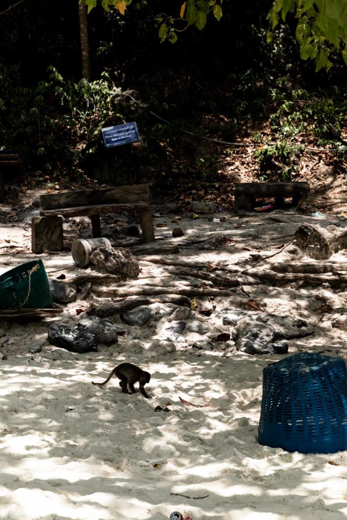 Kayaking was a great way to escape the crowds and find some quietness in such a touristy place. Seemed like most other people opted to get driven around in boats instead of paddling themselves. But I got to go my own speed and revel in the gem green color of the bay. I paddled to Monkey Beach, one of the many beautifully aqua shorelines around these islands. Maya Bay is just a bigger version of this! It wasn’t hard to find the monkeys, they were actually quite cute and small. I’d seen my fair share in Hong Kong before, so it wasn’t as much a novelty but I was happy to meet these cuties! At Monkey Beach, there’s a closed off section for people to snorkel and check out the fish, which were swimming too quickly for me to grab a picture of them. Next up, underwater photography ha!