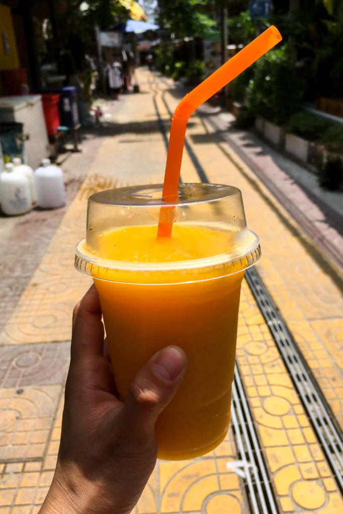 Once I landed on Phi Phi, I started to roam around town. It’s pretty small and walkable and plenty of food stalls and restaurants. I grabbed a mango smoothie (60 THB) immediately! It was too hot for me to even want to hike anywhere but there’s 3 viewpoints that would be worth checking out if you had the time. The first view point is just above town, a super short walk. I headed straight to the other side of the island (Tonsai is the thinnest strip of the island). Normally I’m one to check for the cheapest options, but I took the first kayak rental shop I found, which was just 200 THB for an hour. Equivalent of less than $10! They were kind and let me have a dry bag as well. I’ve paddled plenty but it’s great to have a little reassurance if you were to hit a large wave or anything were to accidentally happen, your electronics would be safe.