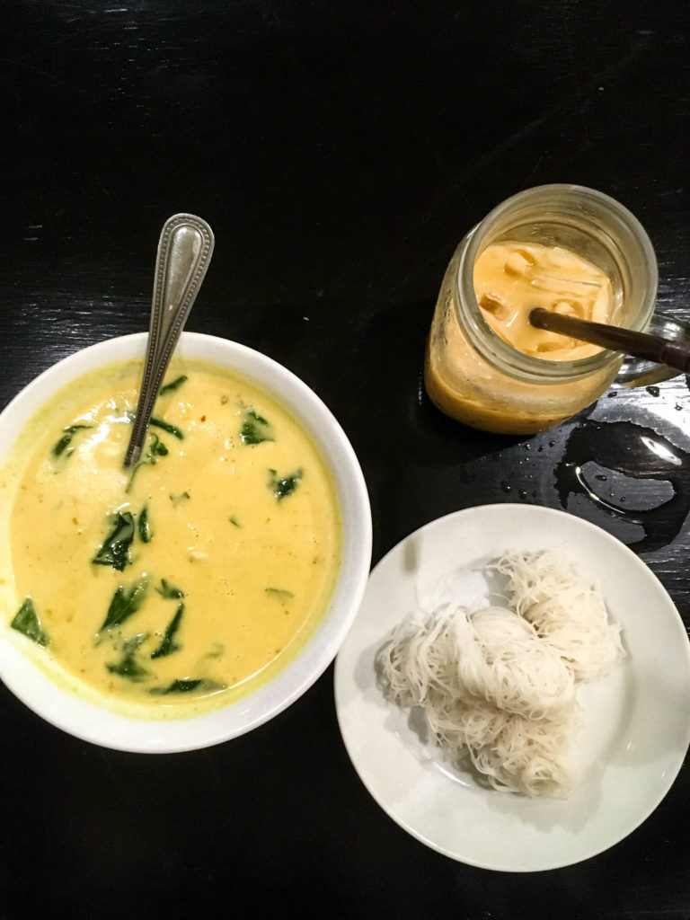 Anyway back in Phuket, and after showering, it was time to wander the streets again. Old Town Phuket, though a little touristy, was pretty cute with its colorful buildings. There’s so many food places, I wish I could stay longer. I ended up going to the well reviewed One Chun Cafe. I was so close to getting Pad Thai again, but the crab curry noodles (425 THB) sounded so delicious. It was famous for that, so I had to get it. They ran out of mango sticky rice, but they recommended their sister restaurant around the block at Raya to get my fill of dessert (120 THB).