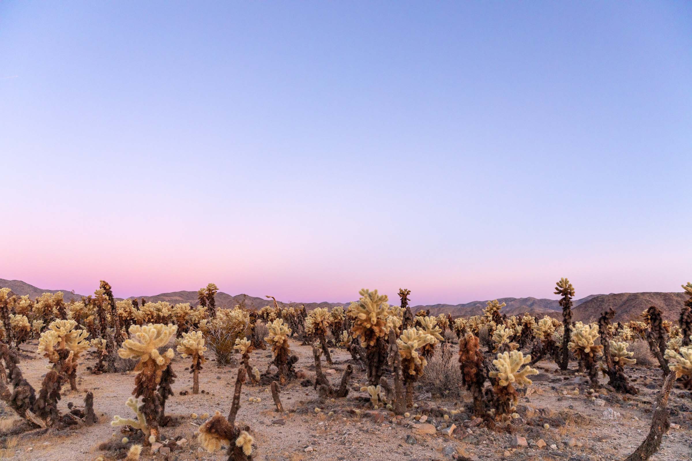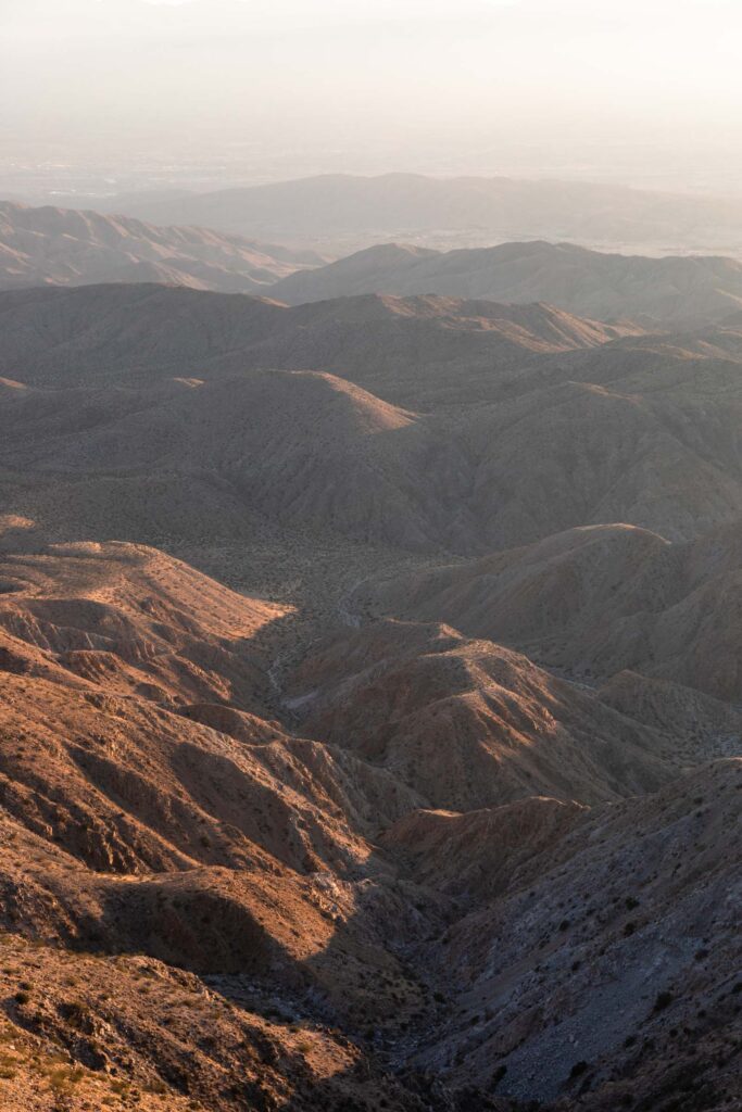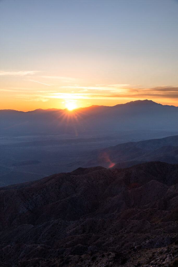 To end the day (this was actually a different day for us after a WFH day), drive to Keys View for effortless sunset views. You could hike around a little bit, but the views here are plenty good, though lacking in Joshua Trees.
