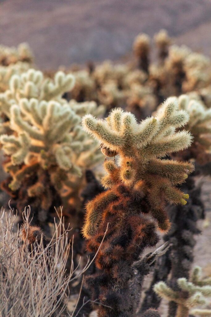 If you can muster getting up before the crack of dawn and drive a half hour, you’re in for a treat at the Cholla Cactus Garden. It truly is best at sunrise because the valley opens out east and the sun lights up the cactus in a way you couldn’t see when it sets over the hill. It turns these prickly cacti into soft fuzzy stuffed plants, but be careful, don’t let it lure you too close! They’re known to be jumping cacti, but I never saw them jump. I did see how balls of cacti can roam loose and attach themselves to each other like an air plant. They are prone to attaching themselves easily when you get too close, but I’m pretty sure they don’t jump out of free-will. Perhaps with an outside force!