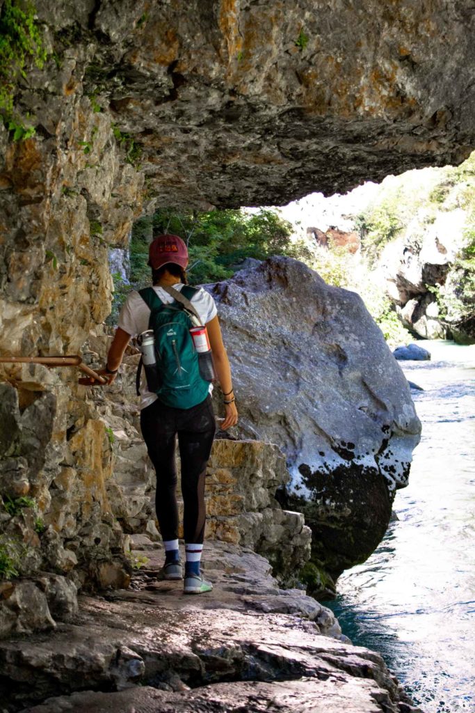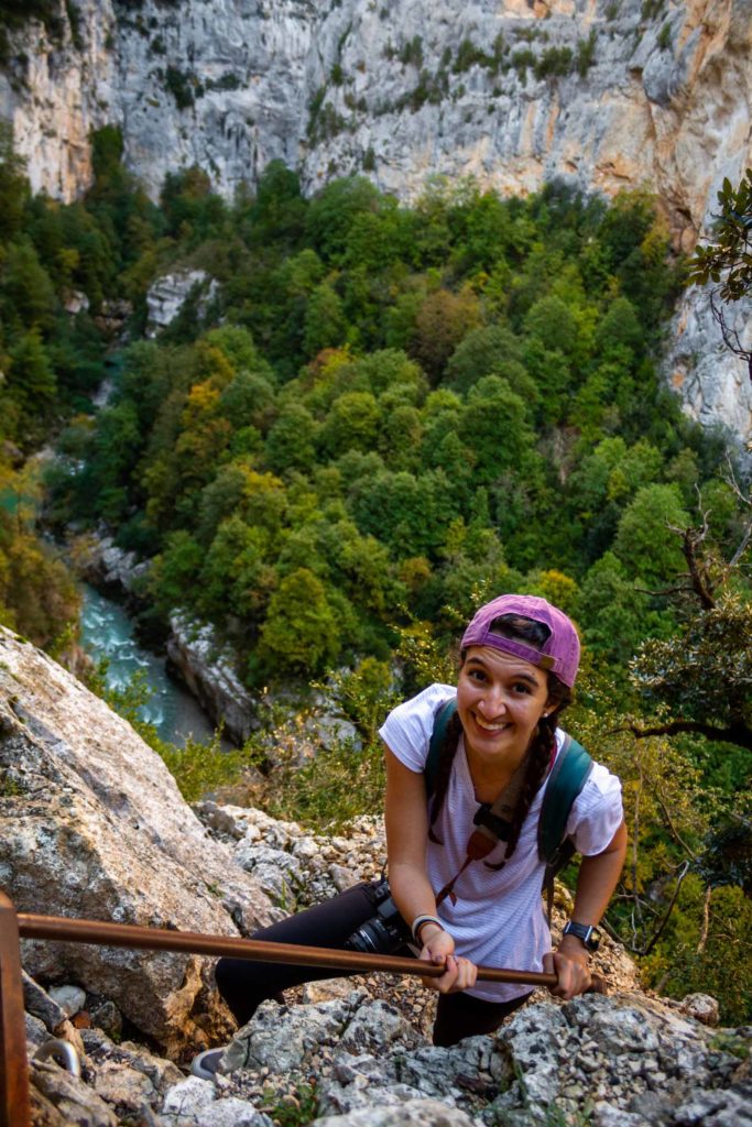 The highlight of the Verdon Gorge trip was hands-down L’imbut Trail. Its name means narrow, which is quite accurate. Although this is regarded as a difficult trail, my friends made it seem easy. It’s hard to not have fun when you’re in a gorgeous gorge! We parked upstream and followed the trail downstream. The trail takes you down 1100 ft to the river quite steeply until you’re next to the river bed. Many switchbacks and stairs line their way up for an easy path, but it still reminds you to watch your step.