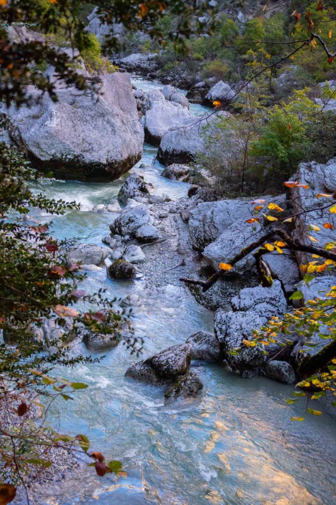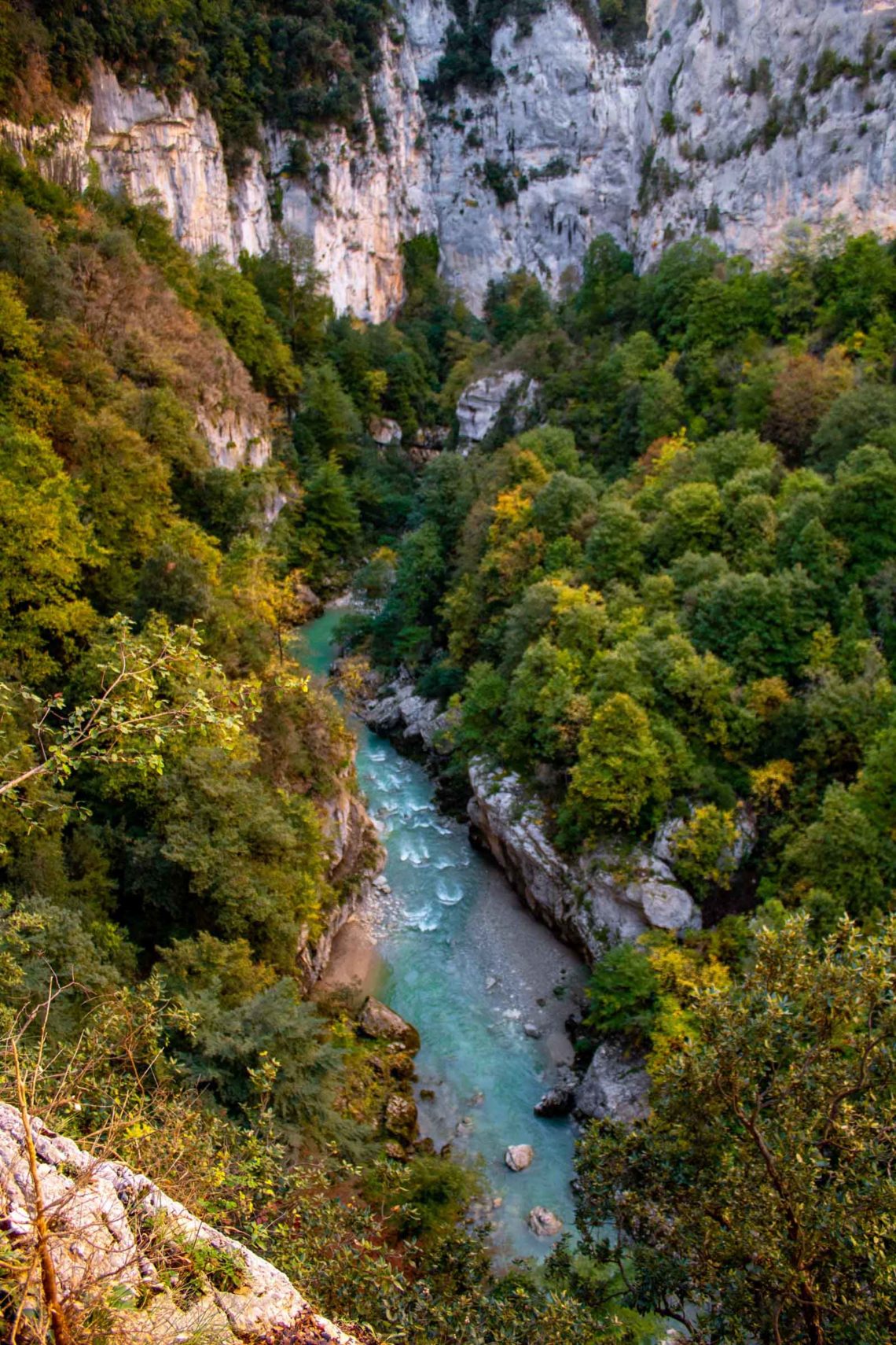 In plain English, this is the Verdon Gorge, known for the green coloring of the river that runs through it. It’s also called the Grand Canyon of Europe. However, it is much more fertile and also much smaller than the Grand Canyon in Arizona. It’s a different kind of beauty and I love it! When you go in the fall after the tour busses have stopped running and the autumn leaves are in peak season, you feel like you’re in a different era. Time transcends you.