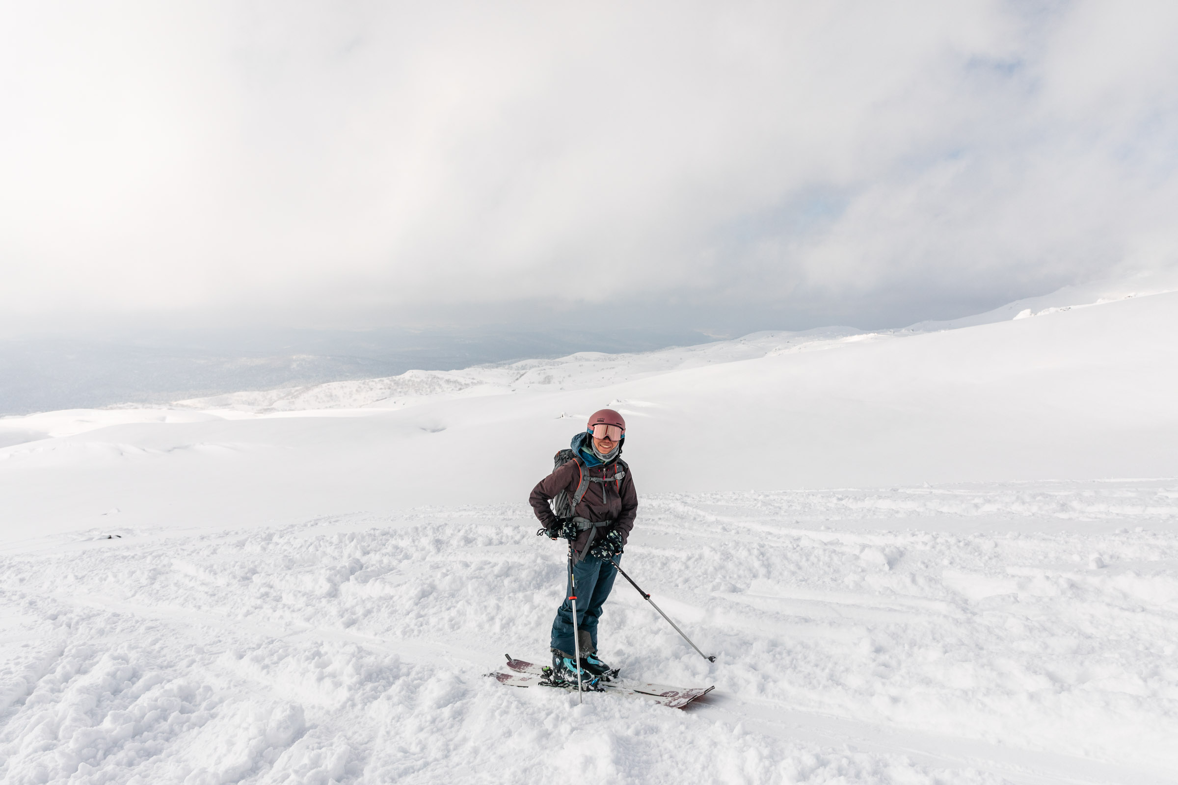 Eventually, we started to hit the icy section where some people decided to turn around and others booted up the ridge where the surface allowed for more purchase. But after 200 feet of annoying boot packing and wind, we gave up and decided to also turn around right when we saw another group. It was demoralizing that we only had about 600 feet to the summit and it looked as if it would clear up, but the weather was doing us no favors. I do think this caused me to catch a cold (too warm while moving, too cold while stopped) and a nasty start to our last ski tour at Mount Yōtei later that week.