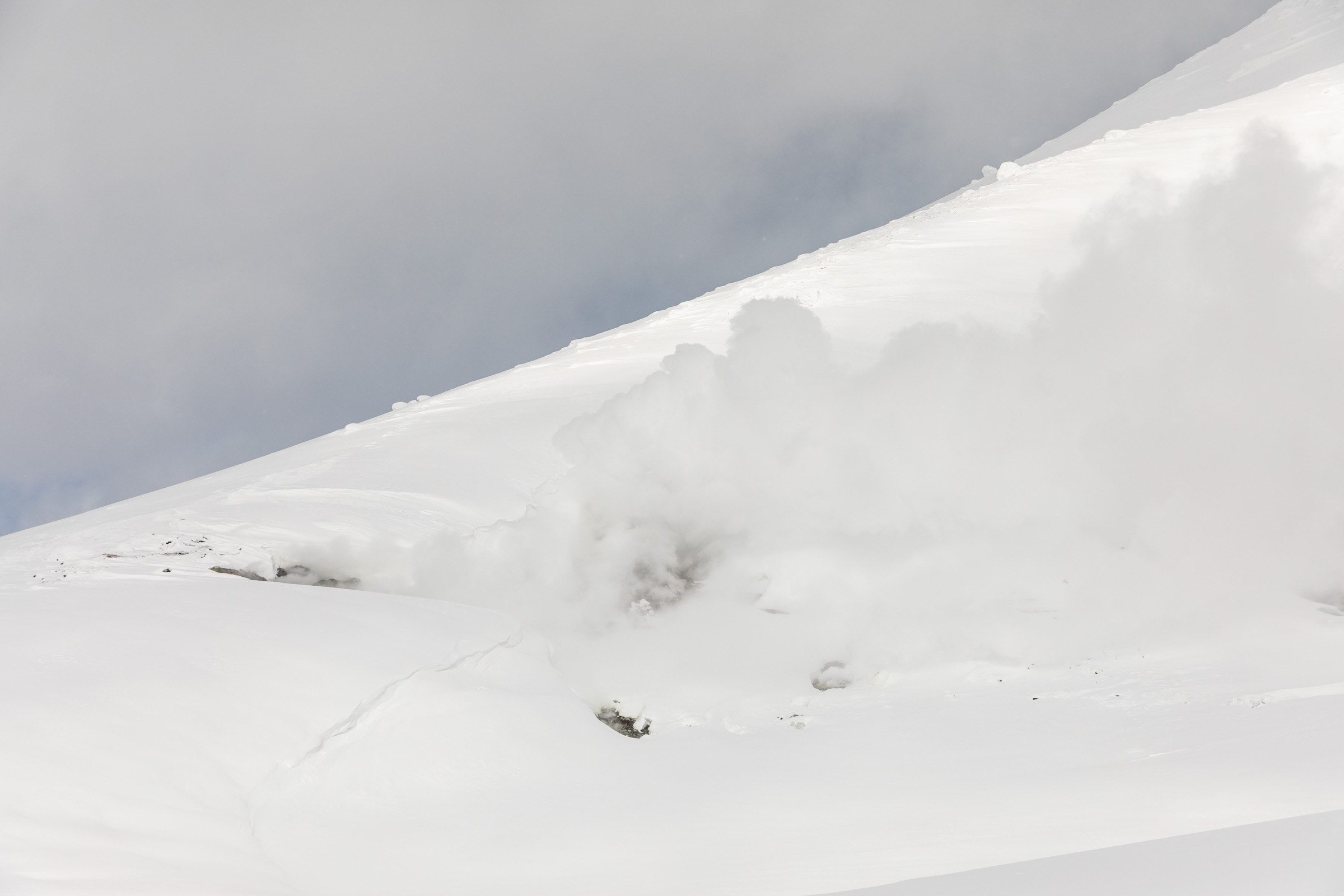We carefully transitioned from boot packing to downhill ski mode. Apparently in the guided group, the guides all assisted their clients to the transition so all they had to do was sit and wait. How lovely (but also how cold). Unfortunately as we readied ourselves to descend, Kyle’s skis randomly popped out under him and caused him to slide uncontrollably a solid 50-75 feet. It was both frightening and slightly embarrassing in front of the guided group. We did not want to be a cause for rescue. One ski stopped as he stopped and the other kept flying down the hill into the whiteout fog. Thankfully, the guides were so nice and level headed that it helped us from going into panic mode. They were so positive and so correct in thinking that the ski would have fallen and stopped straight downhill. It was also good that the slope mellowed out, but were it to slide further down the mountain, we’d be further away from the ropeway where we needed to go.
