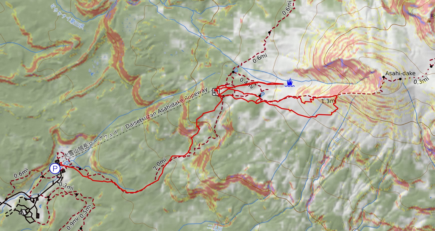 - Parking: There’s a few lots and they get packed quickly. Navigate to the ropeway and take whichever lot you get to. I ended up parking next to the Asahidake Visitor Center.
