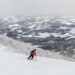 The clouds parted and we finally got a peek at where the ski landed and I cautiously navigated the icy terrain to the runaway ski while Kyle skied behind the guided group on more soft snow. The guides really knew what they were doing. Regrouped and calmed down, we got a few lovely turns before traversing over to the ropeway area.