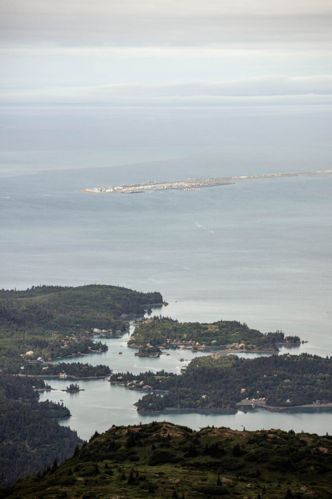 We saved the best for last! Amongst all the hikes we did on our trip to the Kenai Peninsula, this was by far my favorite for the solitude, sweeping views, and access. If you find yourself in Homer, Alaska 4 hours away from Anchorage, you might wonder what hikes you can complete. Homer itself is on a sub-peninsula of Kenai Peninsula that can only boast of peaks under 2000 ft above sea level. However, if you cross the Kachemak Bay to the Kenai Wilderness, plenty of 4000+ ft mountains with tidewater glaciers ending in the ocean.