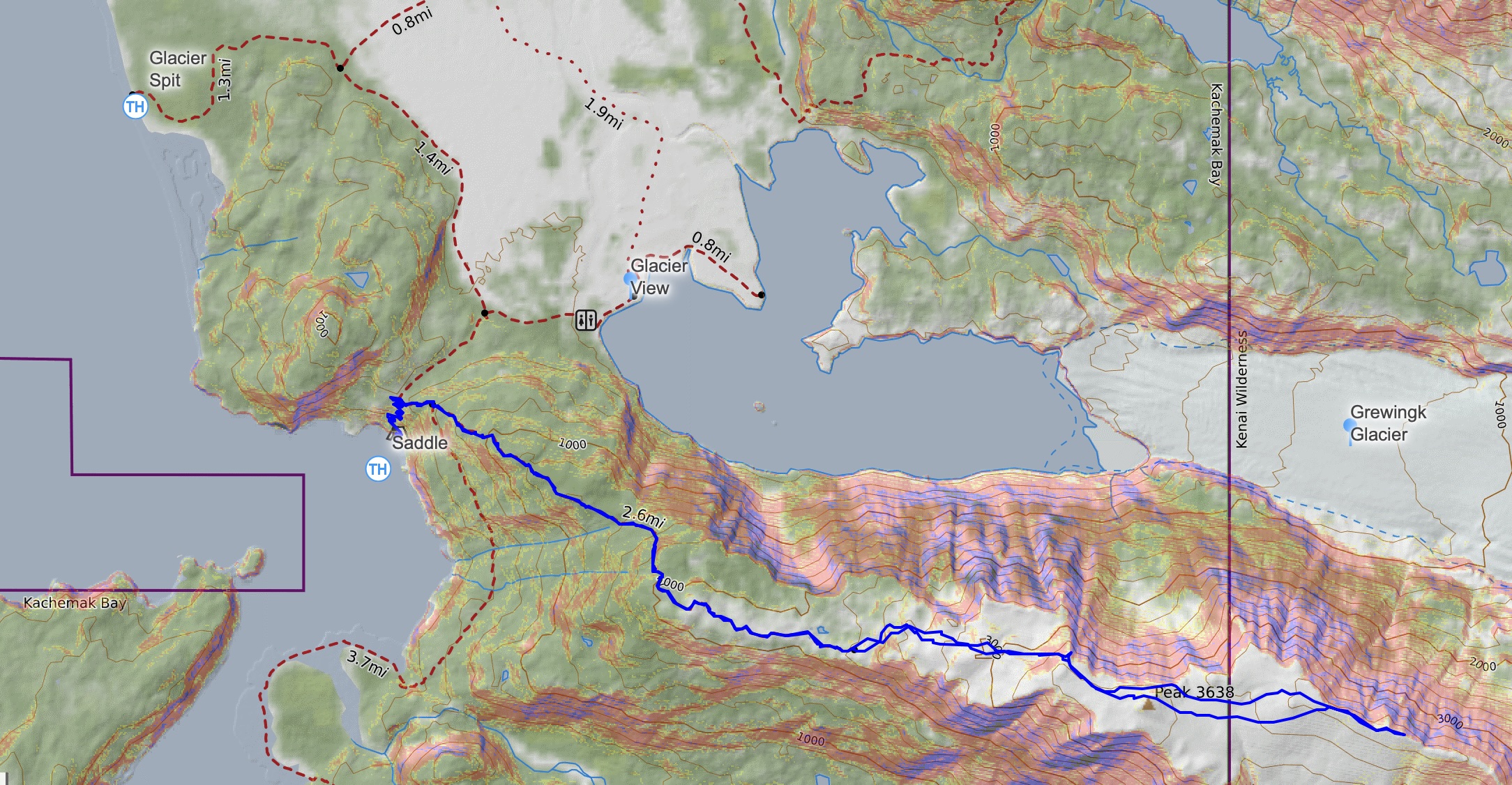 - Be cognizant of which trailhead your captain drops you off. It will likely be Rusty’s Lagoon at the Glacier Spit Trailhead with a pick up at Halibut Cove at the Saddle Trailhead. They assume you only want to hike to the Glacier View Trail Ends (marked on google), so they might be confused if you’re hiking the Alpine Ridge.