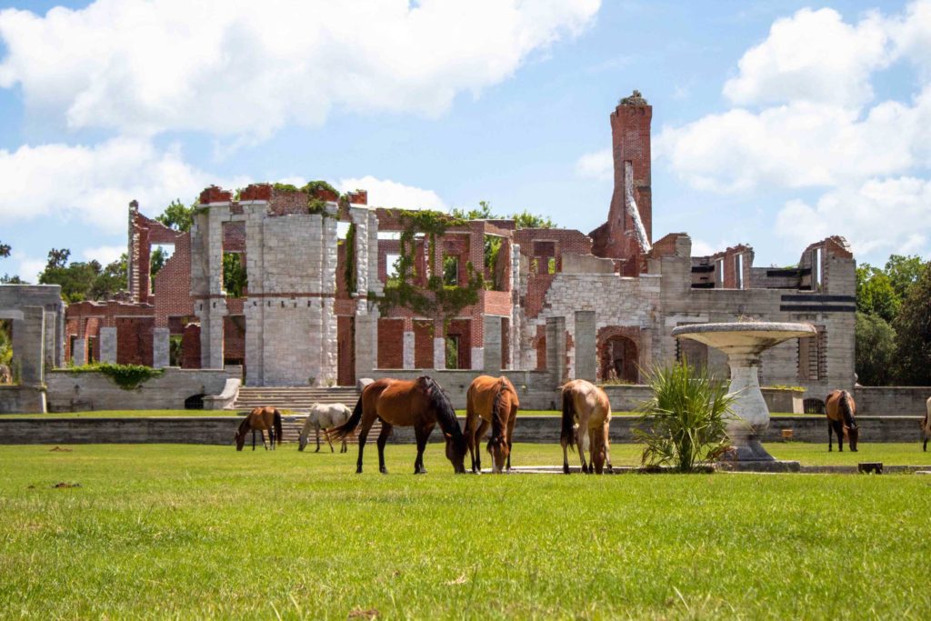 While I was in Georgia, I was looking for beaches to visit and happily stumbled upon Cumberland Island National Seashore, the southern-most island off the coast of Georgia, right next to Florida. And lo and behold, the island is also known for their feral horses that roam among old mansion ruins. Feral horses tend to be found on islands because their isolation is what helps bring them together and disregard any human interactions for an extended period of time. This solitude allows the horses to in-breed and create their own community. Since they are largely untouched, except by human visitors, Cumberland Island is now federally protected land. Therefore, Cumberland Island is only accessible by boat.