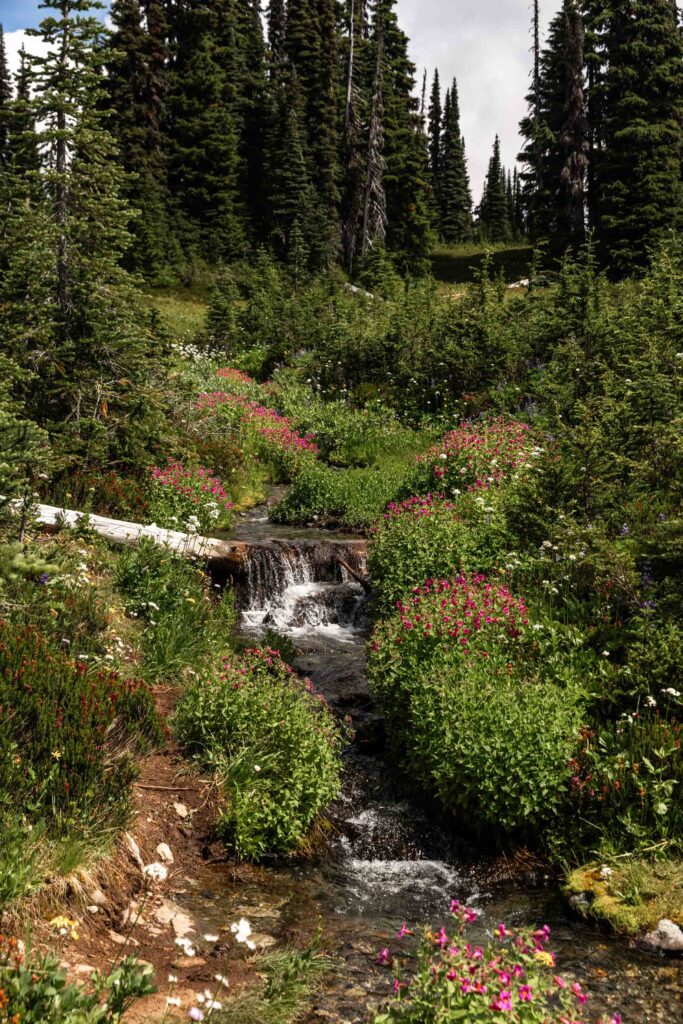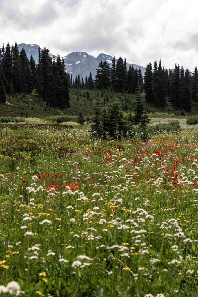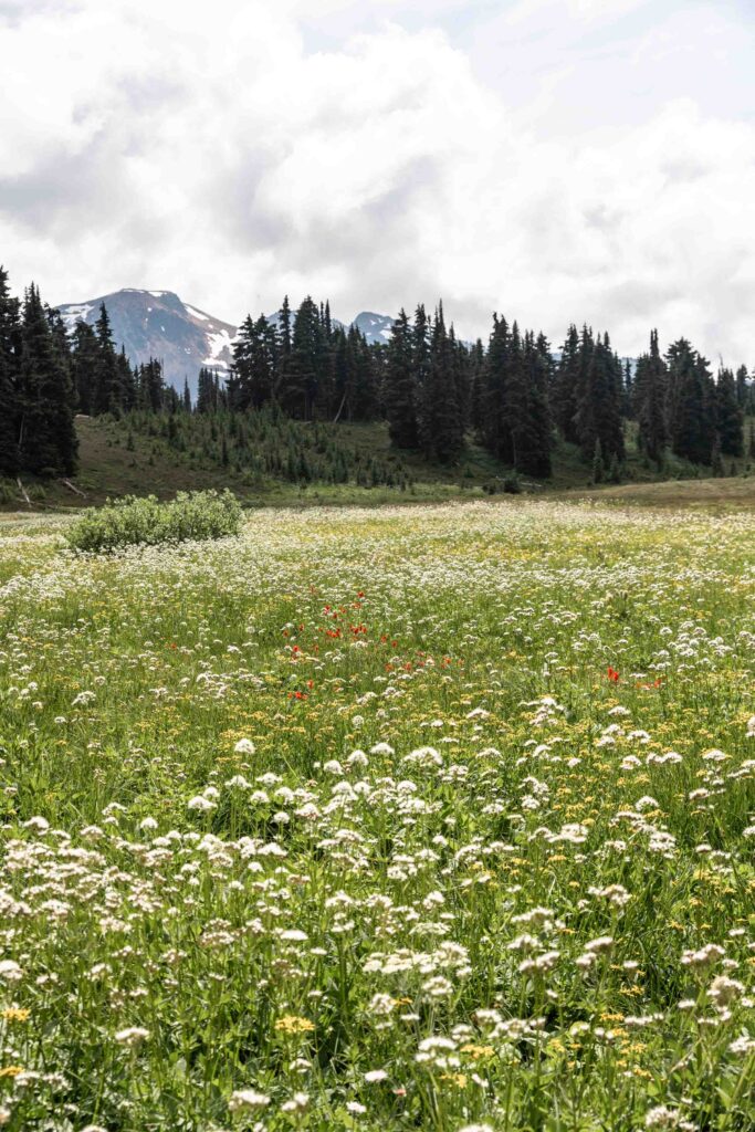But literally straight out from Taylor Meadows, the meadows started becoming more consistent and the wildflowers were absolutely blooming. I could have cared less how fast we hiked and could have been so content just sitting among the flowers. I do love how these Canadian trails have so many signs for not going off trail and how it damages nature and can be dangerous on switchbacks. Plus the boardwalks seem super sustainable and clear where you should and shouldn’t walk on. Let’s adopt that Washington, shall we?