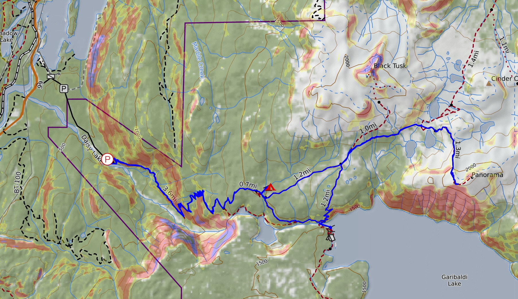 - We parked at Rubble Creek Trailhead. Day hike and overnight permits are required for Friday-Monday and holidays. For day passes, they open 2 days beforehand and can be found at the BC Parks website. Rubble Creek is under Garibaldi, though you also have the option to start at Cheakamus. Overnight backpacking permits can also be found on the BC Parks website. Choose either Taylor Meadows or Garibaldi Lake for hikes starting at Rubble Creek. Helm Creek or Cheakamus Lake is also an option for backpacking to Panorama Ridge.