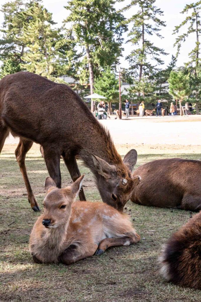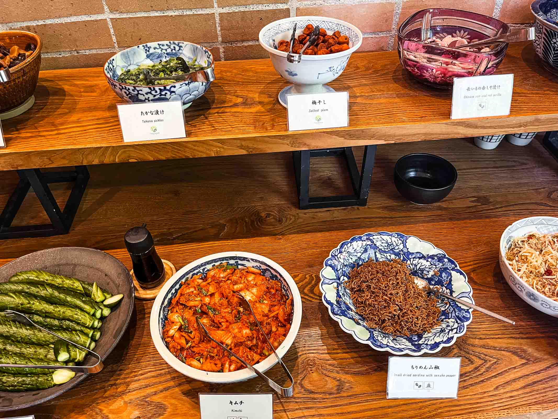 As you go further south down the JR line, you’ll end up in Nara, famous for the wild deer. Don’t worry because they are everywhere and not afraid of people. I thought you had to head all the way to Nara Park to find them but they are anywhere win the parks and next to museums. They’re pretty aggressive with grabbing things and ate a paper out of my hand. I tried pulling the paper out but they’ve got strong jaws. I think they’re conditioned to eat paper-like objects because lots of vendors sell wafers that you can feed the deer. Honestly you can still get close to them without feeding them which allows you to have more distance. Otherwise they start chasing you like ducks. We originally wanted to go somewhere else for food, but of course the most popular google map restaurant would have the longest line. So we went next door to a pickle restaurant which I had my doubts but it was surprisingly fun and great to eat. But on the other hand, I wanted nothing to do with pickles for the next month. Tsukihiboshi uses a buffet style where you can enjoy all you can eat pickles of many varieties. There were over 20 different side dishes! With your meal, you also get unlimited rice from a rice machine that measures the weight you pick and miso soup. To end your meal, make your own dessert by adding red bean paste in a fish shaped wafer.