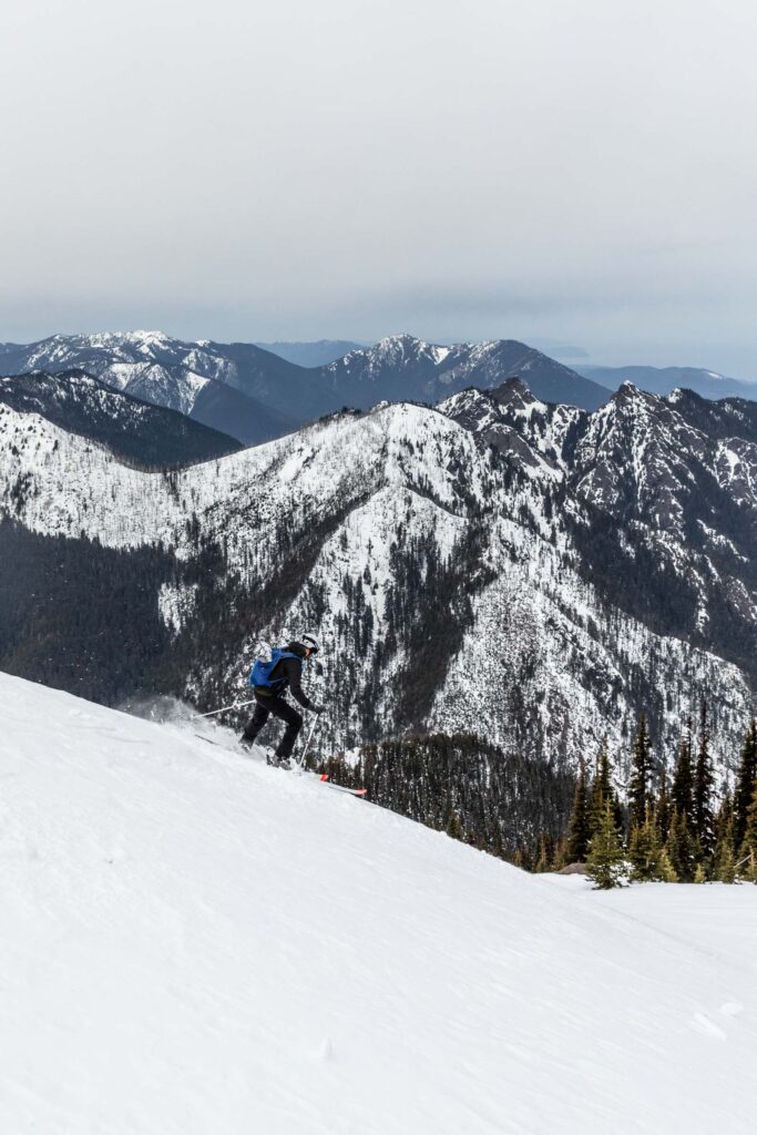 - the epitome of spring skiing | rock mountain ski tour. Lots of switchbacks (or boot packing) to get up the ridge. 5400 ft gain. Stevens Pass.