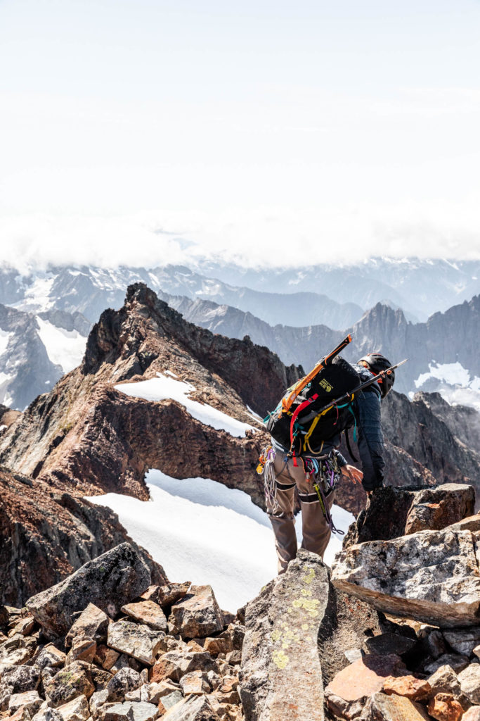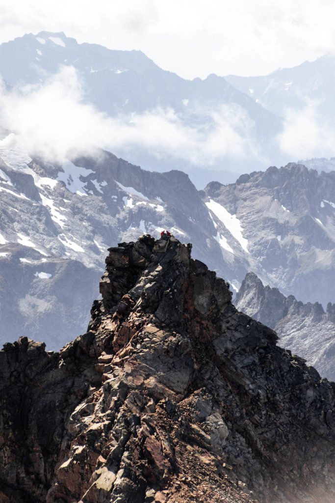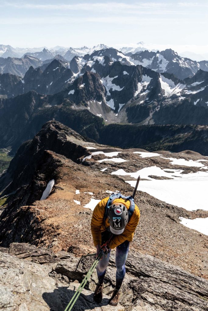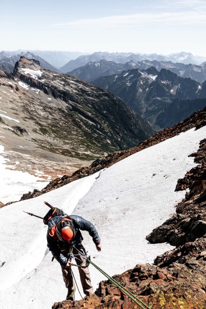 Unfortunately I can’t speak to the scramble to Sahale Peak, but it looks like a fairly straightforward corkscrew route with minimal but not non-existing exposure. It may have been faster to scramble down, but we had rope, so we decided to rappel. Which was great for me because that also meant more time on the summit for pictures. We even met Uli Steidl who’s well known for his Fastest Known Times and had just summited Eldorado earlier that day in 4.5 hours! I’m mind blown.