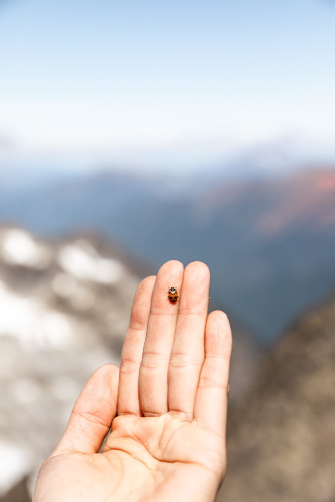Doubtful Lake below was a gorgeous blue and I loved that one hiker declared to rename it as Benefit of the Doubt. Truly the whole section from Cascade Pass to Sahale Arm up to the glacier is a great non-technical hike and I was happy to see so many people enjoy the views (and the berries). As we came down, we started seeing more wildlife. I got to check goats and marmots off my annual bucket list. On both summits, I saw ladybugs for the first time. And we even got a little visit from a pika. On our drive out, a small black bear ran in front of us before disappearing back into the woods.