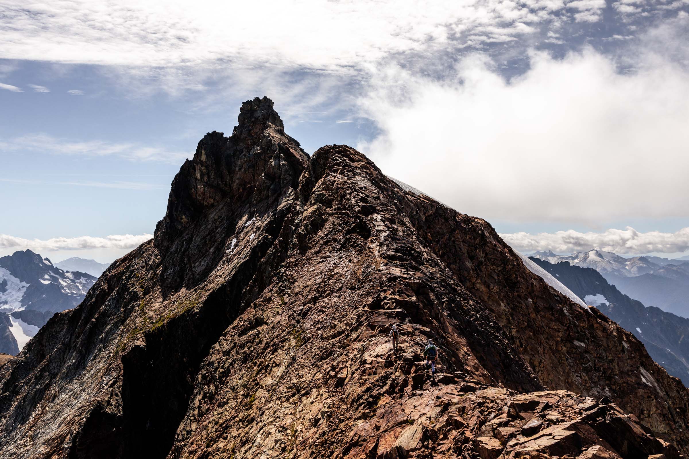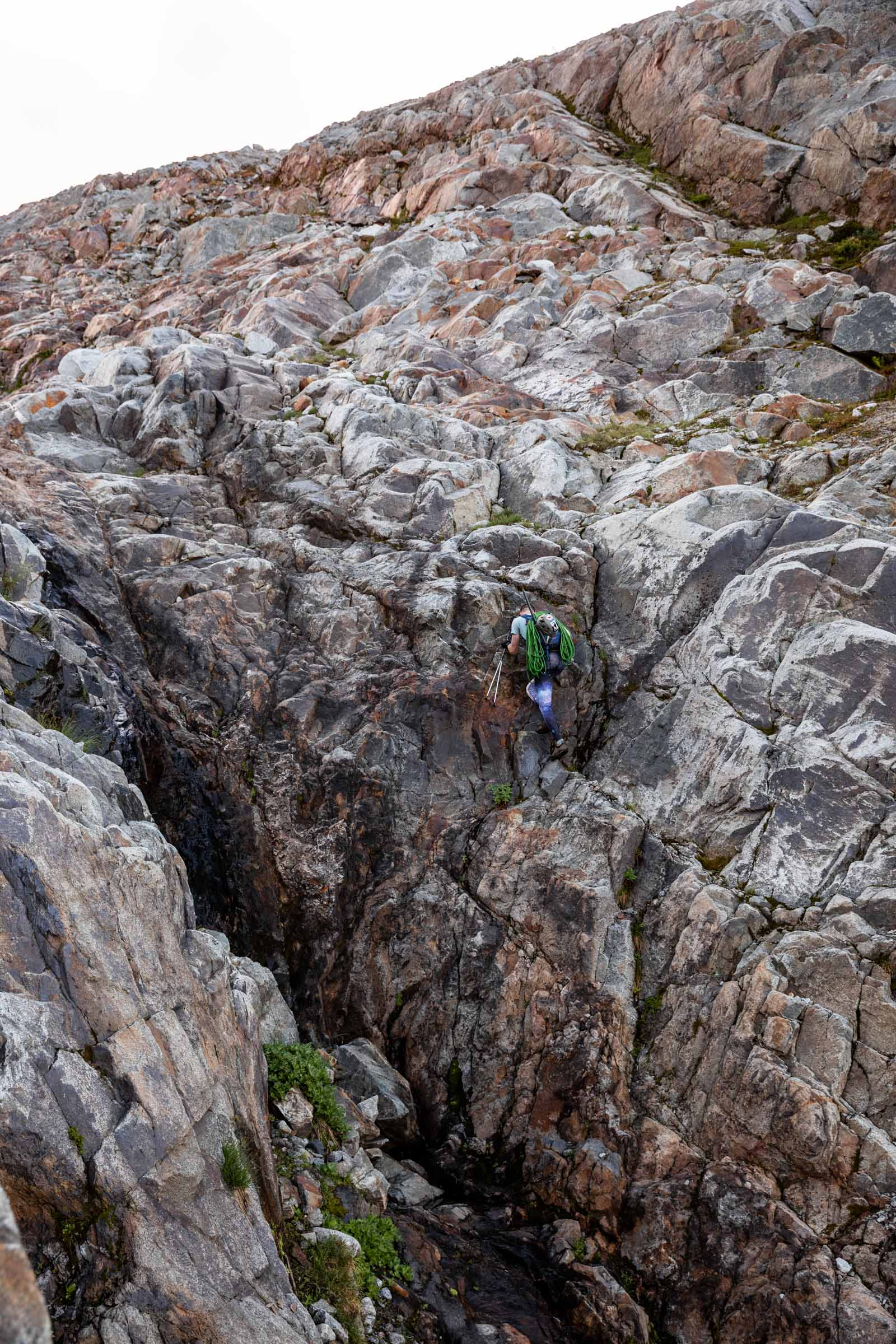 Back on rock, I was happy to be scrambling again, though I still lagged behind the guys. I was a little disheartened that I couldn’t keep up, and blamed it on both my knee and many pauses for pictures. But whatever the reason for my slowness, I’m thankful that they would wait for me every so often. The ridge was so short I even missed where we had first got to the col, which by the way has 3 different bivy sites which would make for some beautiful camp views!