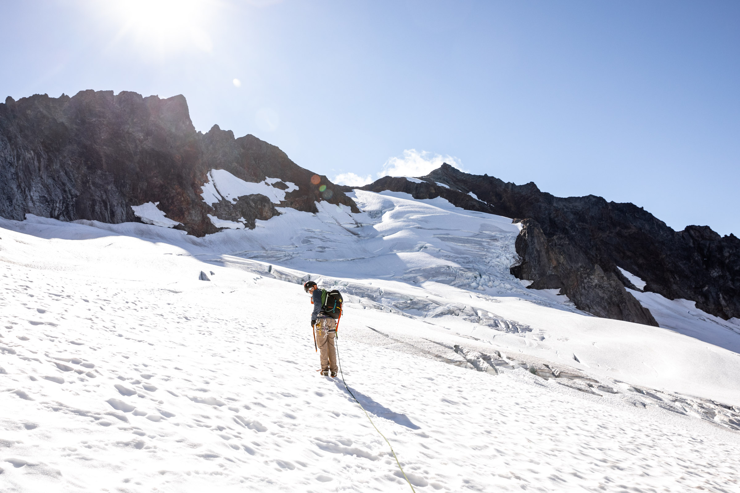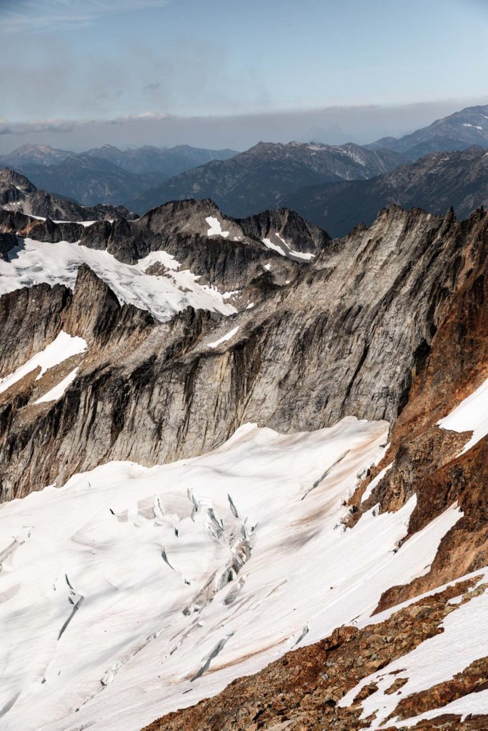 At last, we made it to the summit and the rest would be a breeze in comparison. We couldn’t stay too long on the summit because we still had another peak to bag and the whole descent! The views up here were incredible, seeing all the glaciers in this area from Boston to Buckner and all the layers of mountains to the south that were incredibly backlit. The photographer in me was sad that I couldn’t witness it all in the best light possible. But we can’t win them all, can we?