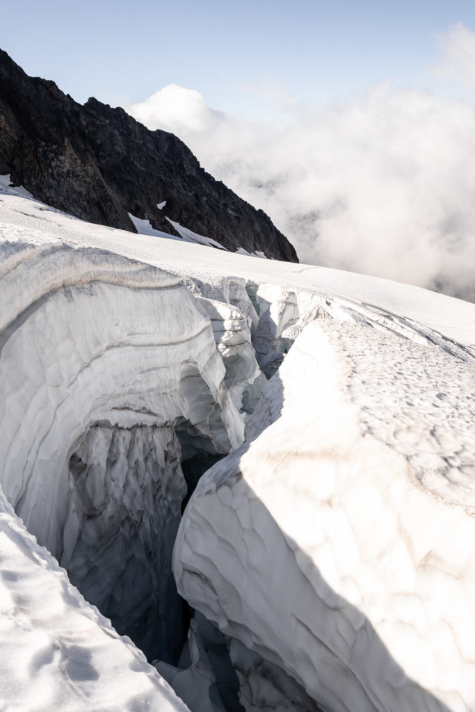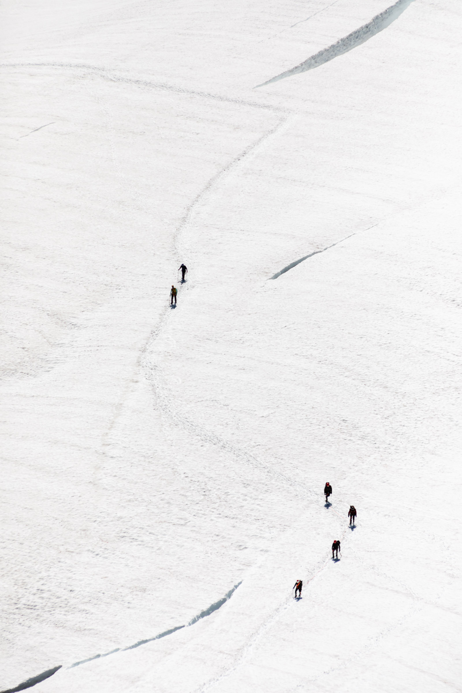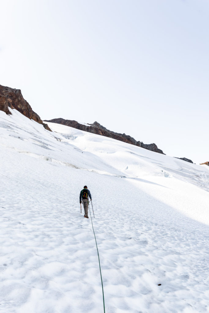 Anyway, after our 15 minute stop, we continued up our own paths until we reached climber’s left of the glacier. Wind was starting to pick up and unless we were in the sun, it was pretty cold! We weren’t rushed on time, so we probably took 30 minutes here to take a snack break and get our glacier gear together. I was a real big leech, didn’t carry the rope, hardly helped with setting up the rope, but hey maybe taking pictures makes up for it? But anyway, considering all our abilities were quite similar, order on rope didn’t matter too much, so I took the middle to carry less weight.