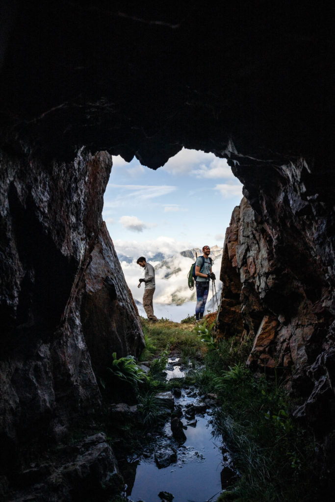 As I was about to take a different way up a rib, Tyler shouted out that he found a mine. I was so surprised! We decided to take a detour to explore it. It was quite tall and wide but honestly not too deep. I did some light research and apparently this area produced 2 tons of poly metallic ore in the 1890s. Wild to know that people came all this way up a bushwhack to find the ore. I often wonder what it was like back then to explore mountains.