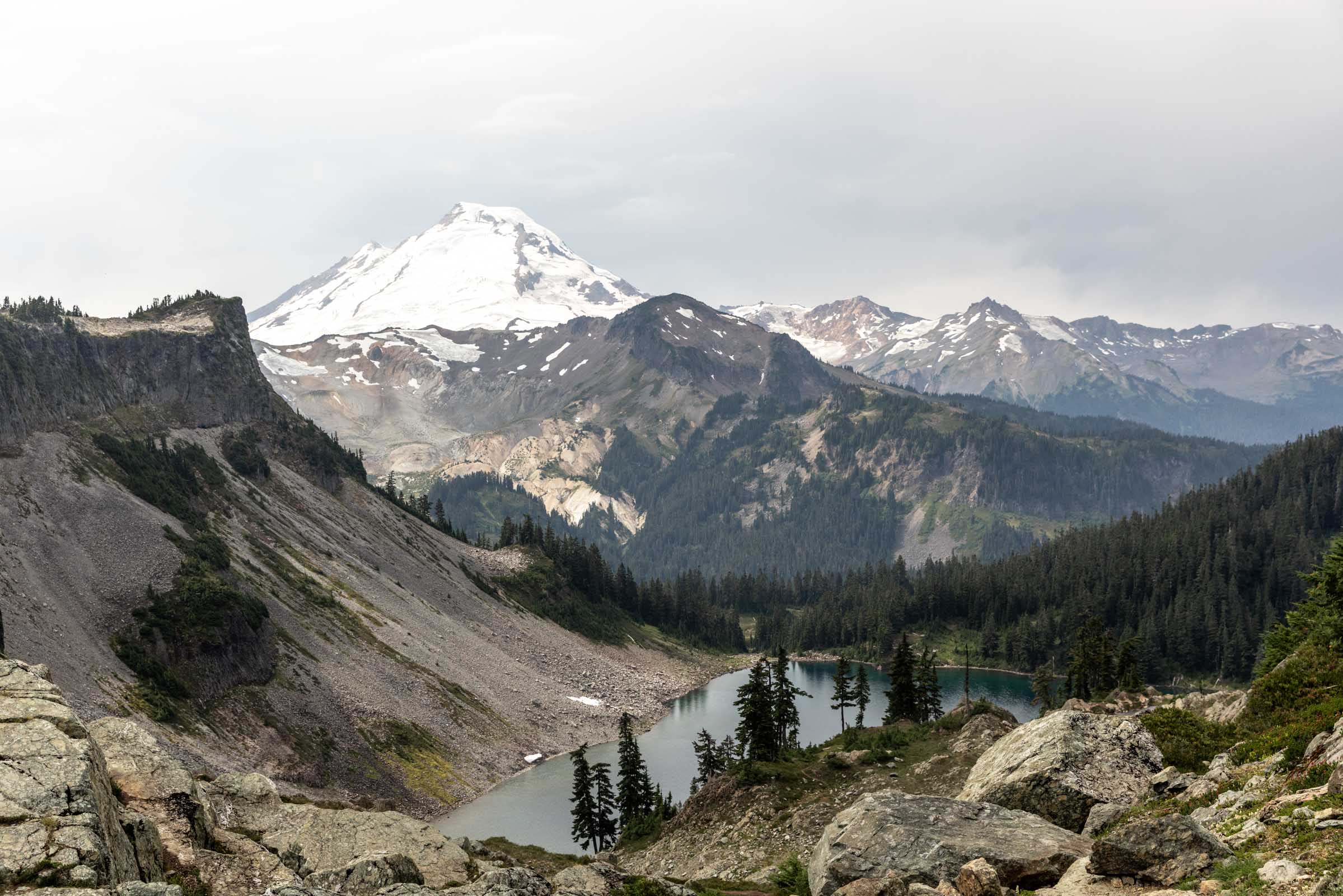 On our way out, we saw a large pack of goats! So fun, and makes the lake aptly named. On our hike back to Chain Lakes, we had the most interesting weather. From hot and sunny to windy and rainy, we had it all. The cold front was intense and I was glad to have my rain jacket with me. But by the time we reached the Chain Lakes Loop, we had great moderate weather again for our final small uphills and for views of Kulshan with the lakes. Soon enough, we were back at the trailhead, ready to change into sandals!