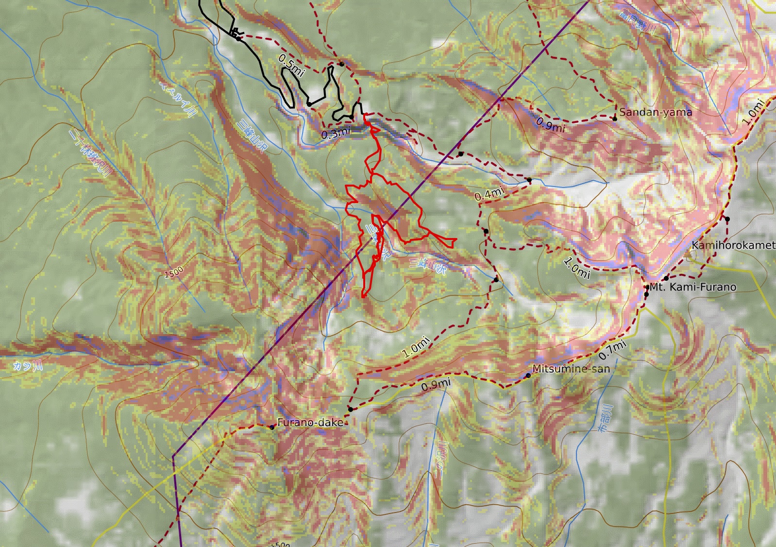 My default coming from Washington is always Caltopo. It never lets me down! I’m used to coming up with new, creative ski tours and reading the topographic map so it came rather easy to me. However, for most people, it is always a recommendation to hire a guide whenever you’re going somewhere new. You never know what the conditions might look like and what is more or less popular. From Caltopo, I got to understand the general terrain of Hokkaido. There’s a lot of non-avalanche terrain but there is definitely also serious avalanche terrain and plenty of terrain traps to be aware of. I think the hardest part is figuring out what is open enough to ski and avoiding purely flat areas.