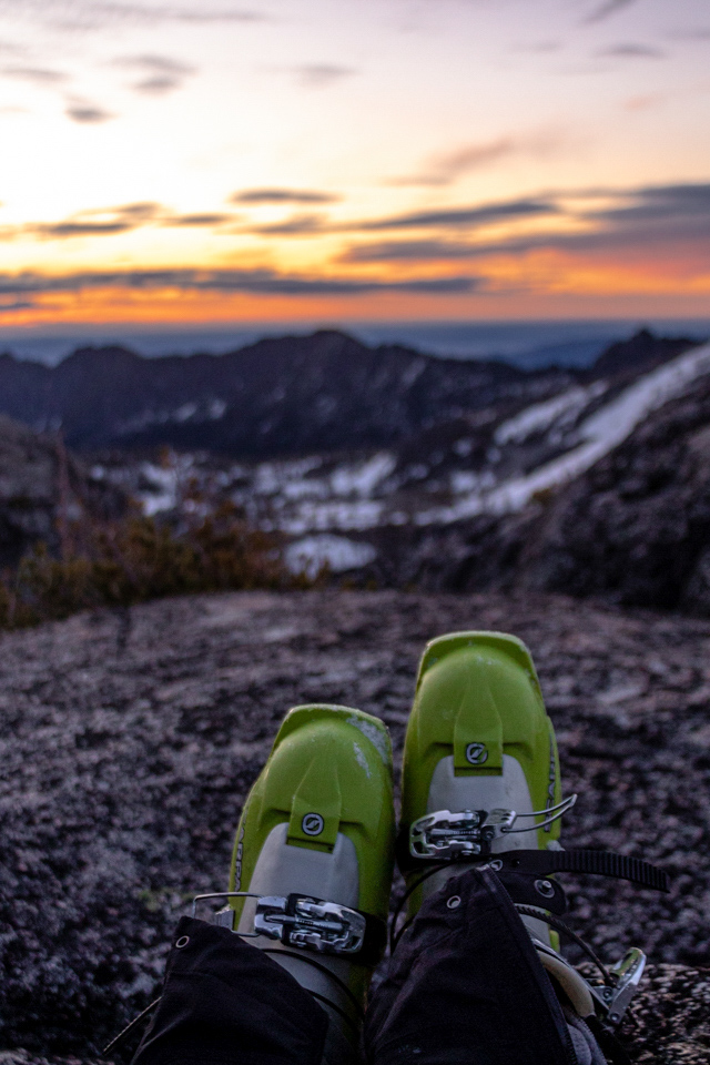 No, that’s a different story. But my mind would wander, wondering how much farther we’d have. This hike out was honestly more pleasant than I last remembered, other than the throbbing pain in my knees. The wildflowers were blooming, we’d go in and out of forest, enjoying the sounds of Snow Creek roaring through the canyon. And as the sun was setting on us, we could finally see the road and the parking lot. We made it! A successful 2-night thru-hike of the Enchantments, hauling snow gear and walking so many miles and hours. I was proud of our decision making skills and of course, Hannah’s adventurous spirit to keep us all going. This was not an easy multi-day, snowy hike, but Hannah nailed it and Abby and Jack were gracious in their backpacking/hiking tips when I was selfishly skiing off in the distance. Cheers to friendships and adventures and more to come!