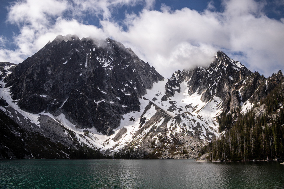 The next morning, we had a lazy wake up to pack up camp. First backpacking night for Hannah, check! We then started hiking to Colchuck Lake, another 2 miles. As we gained elevation on the switchbacks, we also got to see Mt Stuart in the background. Although Stuart is part of the Enchantments as a mountain range, it’s not part of the thru hike and is generally hidden behind Dragontail and Colchuck Peaks. This is my third time to Colchuck Lake and it still does not disappoint! I don’t think I’ve been to any alpine lake this many times! As much as Colchuck/Enchantments are overhyped and overcrowded, there is most definitely an allure to it. Just the shear rock wall of Dragontail rising above the lake could be mesmerizing enough, or the green-blue hue of the lake.