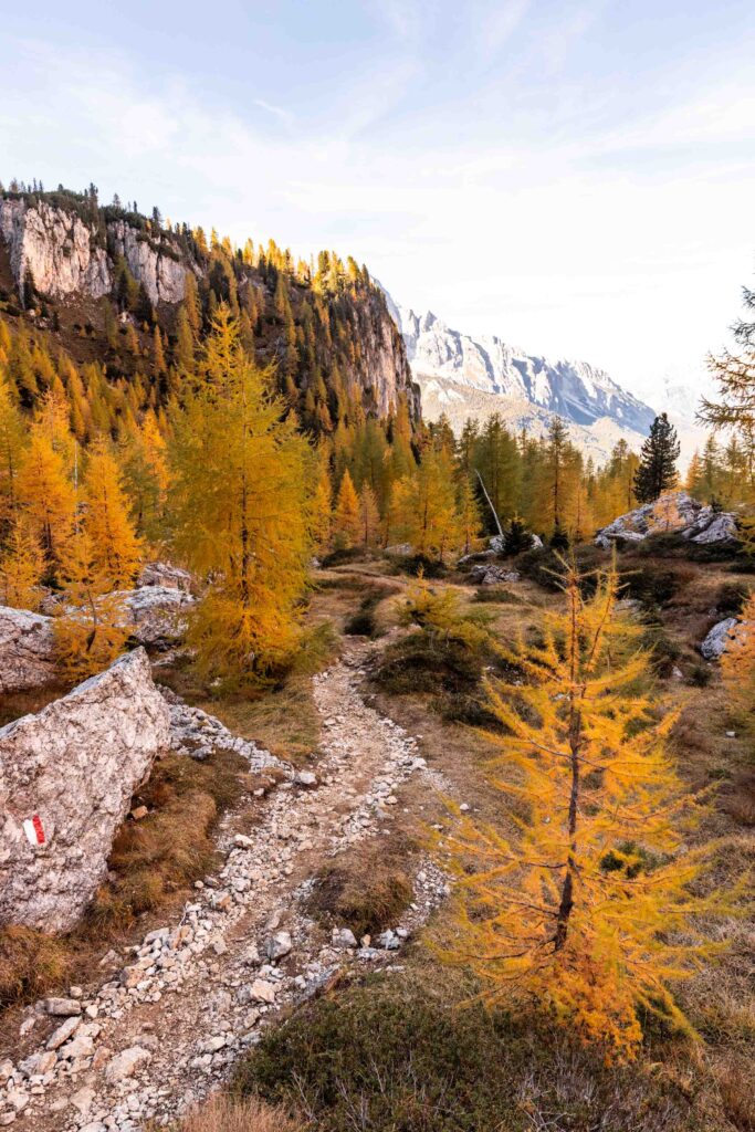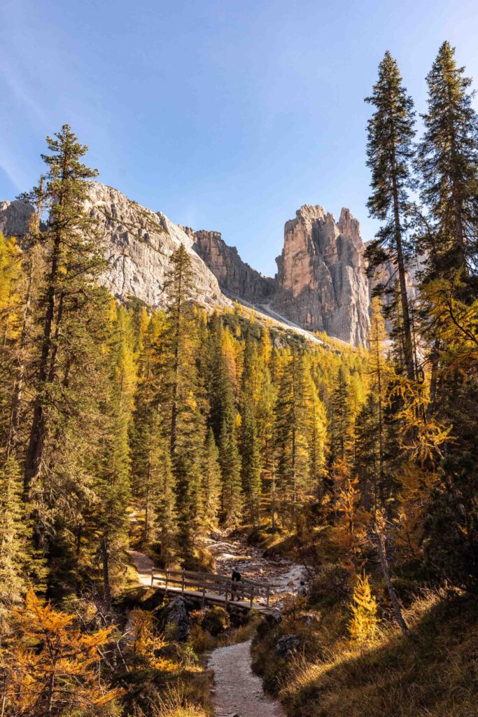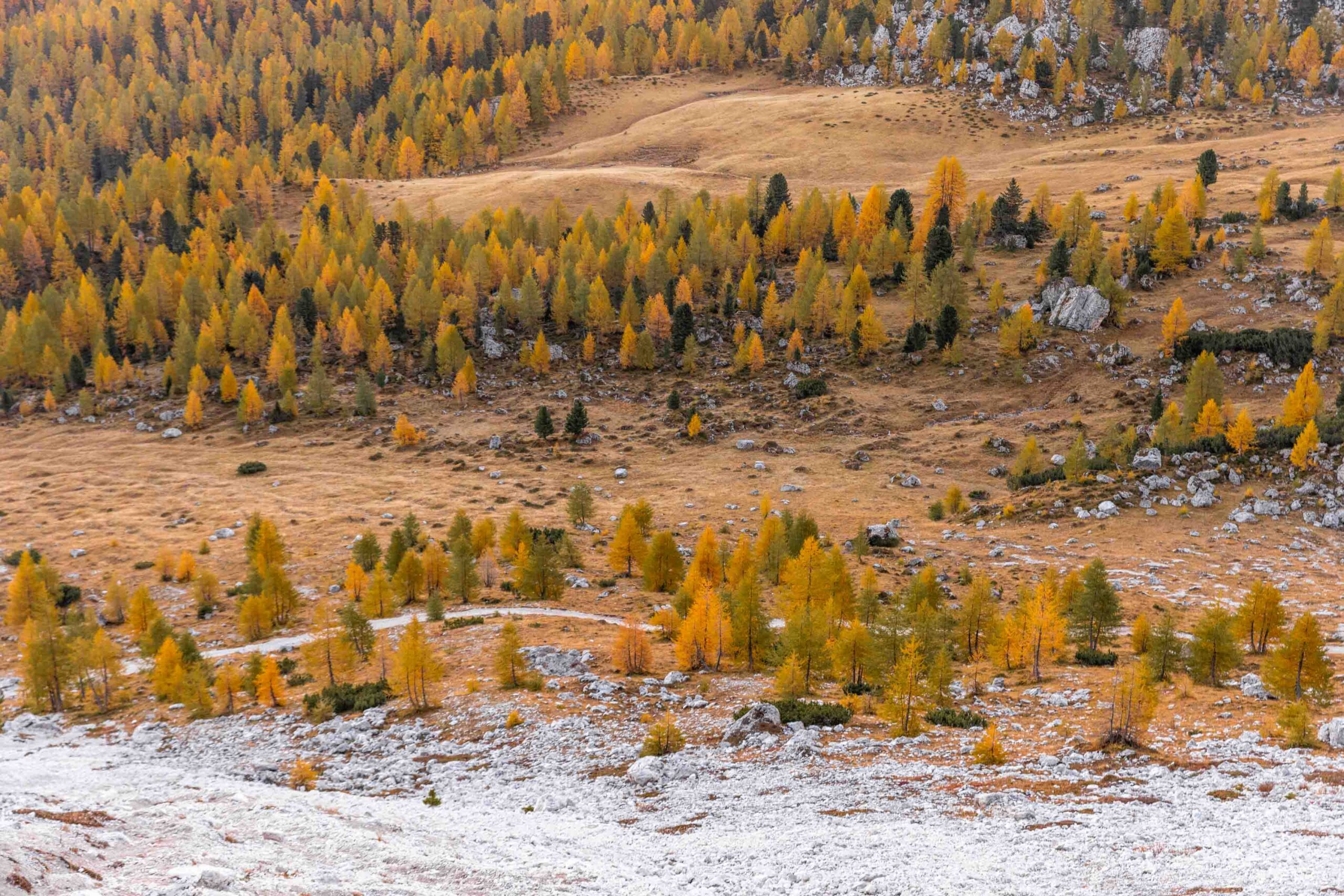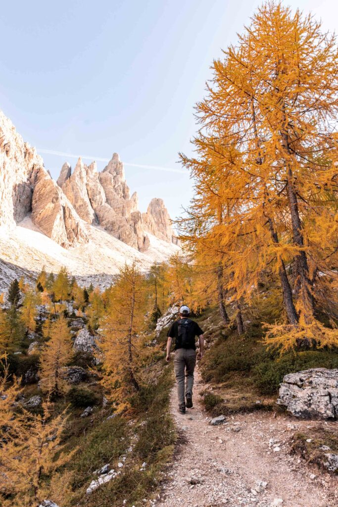 When traveling, I usually like to visit new destinations even if I’m back at the same area. Well, I found myself back at Cortina d’Ampezzo. But then I found myself yearning to be back at Croda Da Lago again. This time, with less snow, more fall color, and better weather! I was determined! This time with better research, I found an entirely new path to get to the rifugio.