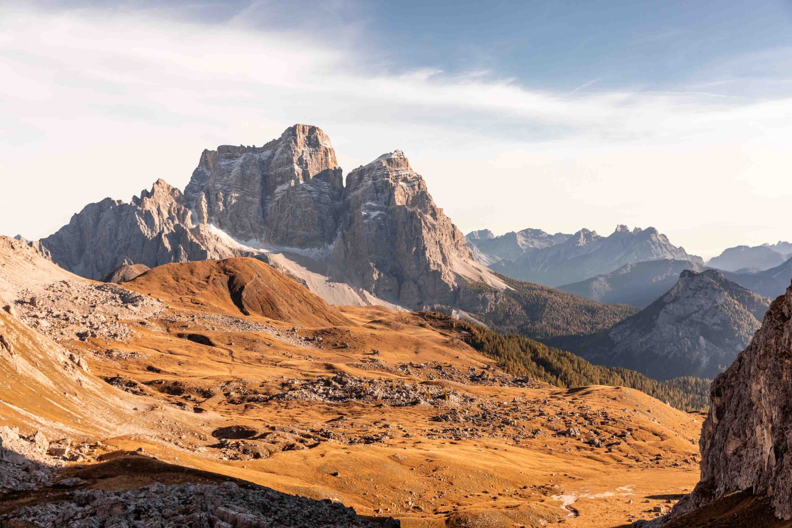 This is my favorite method thus far! We took a counterclockwise loop around Cima Croda da Lago, the peak that looms over the lake. This method starts off similar to method 2 where you park at the Ponte de Ru Curto. We had to pay close attention to take a faint right turn that took us up the valley between Torrione Marcella and Cima Croda da Lago. Very soon we found ourselves above the trees and slowly gained more elevation. It felt a bit hard at first since we had some overnight gear but then the trail got less steep and more exciting with the increased views. We took a break at the saddle Forcella de Formin. We saw a few more people here and then descended to Forcella Rossa before a steep descent on loose rock back to the main trail. Alternatively if you want something more mellow or if it’s too icy, you can descend to Forcella Ambrizzola. It just adds a little more distance to mellow out the trail. Back on the main trail (technically called the Dolomites World Heritage Geotrail 46), it was an easy walk to the rifugio. A great end in sight!