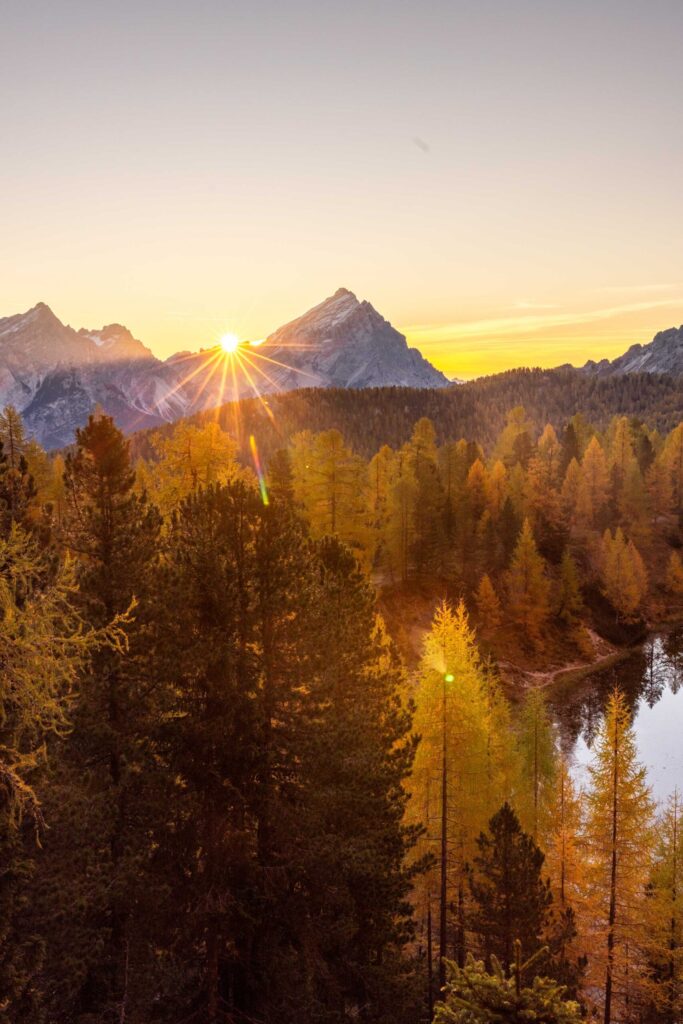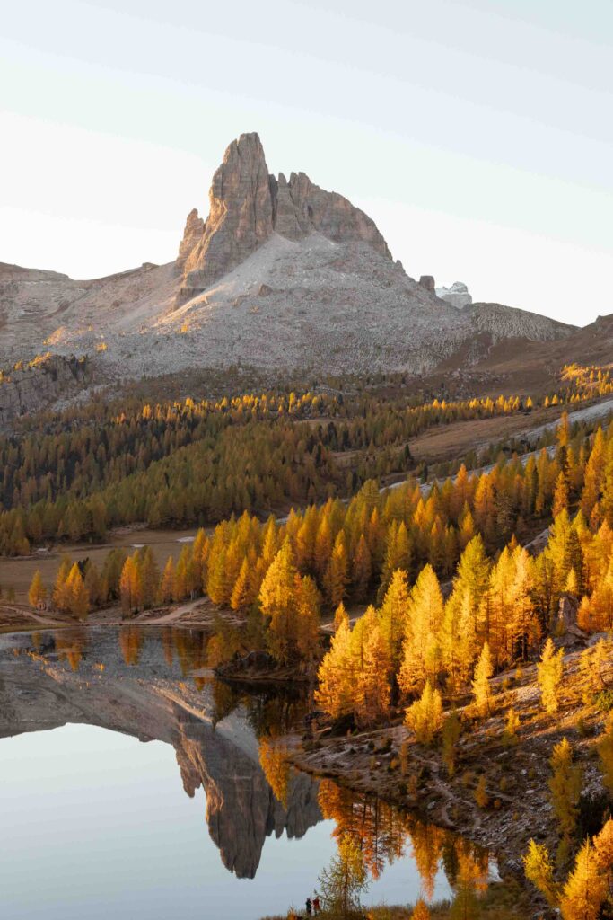 At the opposite end of the lake, we found about 20 other photographers trying to get “the photo” of the glowing golden larches. It was quite the spectacle! And yep, I contributed to that effect. It’s not much of a secret but it sure is a wonderful sight. I think most of them hiked early in the morning to get here and only a small handful stayed at the rifugio.