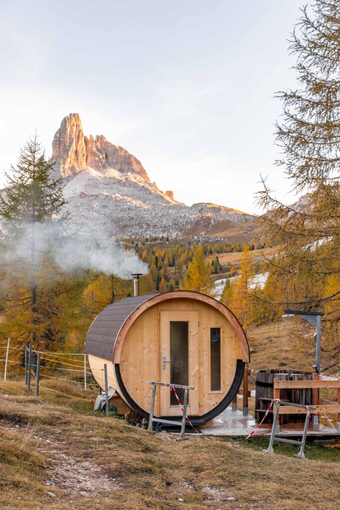 The rifugio experience in the Alps is such a wonderful time, I always highly recommend it! Plus, the Rifugio Croda Da Lago has a cute sauna too. How can you say no?? Most huts have two names, one for the regional name and the other named after a person. So you might see Rifugio Croda da Lago or Rifugio Palmieri but somehow not called Federa, which is the name of the lake. I suppose there’s already Malga Federa. Malga means a livestock farm, so you won’t want to live there.