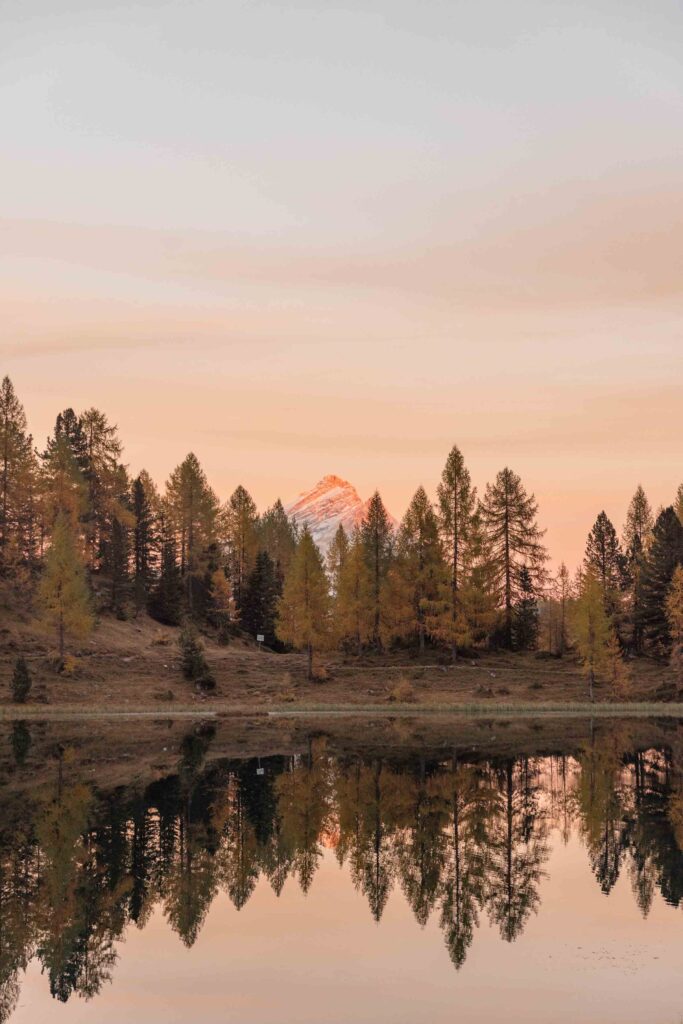 Park at the Ponte de Ru Curto. When the trail diverges (you might even miss it, which is okay!), take the left trail to head up the steep slope. Generally this trail is very mellow except for this one part. There’s a couple great view points along the way that open up to the valley across, looking at Tofana di Mezzo (Punta Anna) and Cortina itself. I thought that the Becco d’Aial climbing wall looked spectacular! By this direction, you’ll see the lake before the rifugio. It’s super popular so you might be parked far from the trailhead!