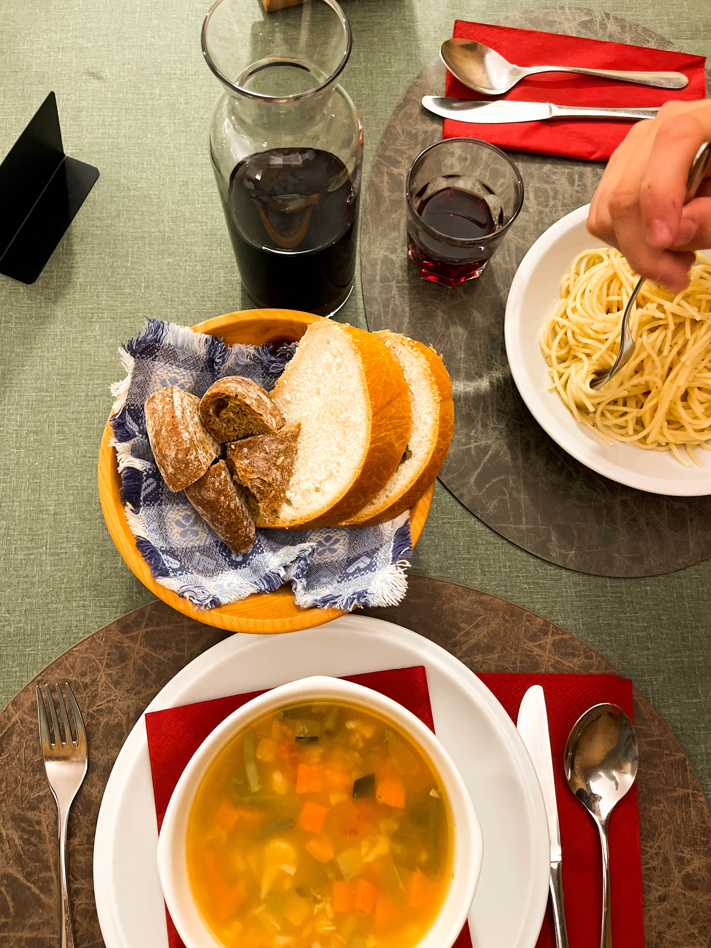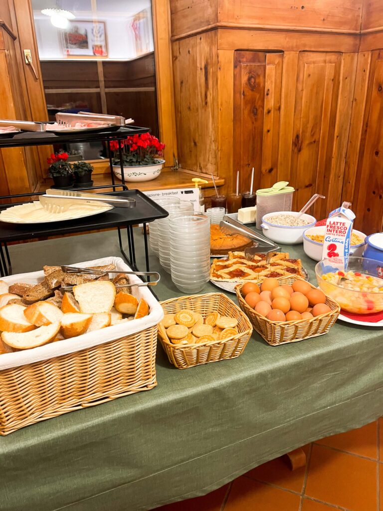 Reservations are easy through the Croda da Lago website. I love that this rifugio opens until October, which is so great for fall season hut experiences. Most close in September. We got half board for €73 which includes bed, breakfast, and dinner. To be honest though, this was one of the lowest quality hut dinners I had. But the breakfast made up for it!