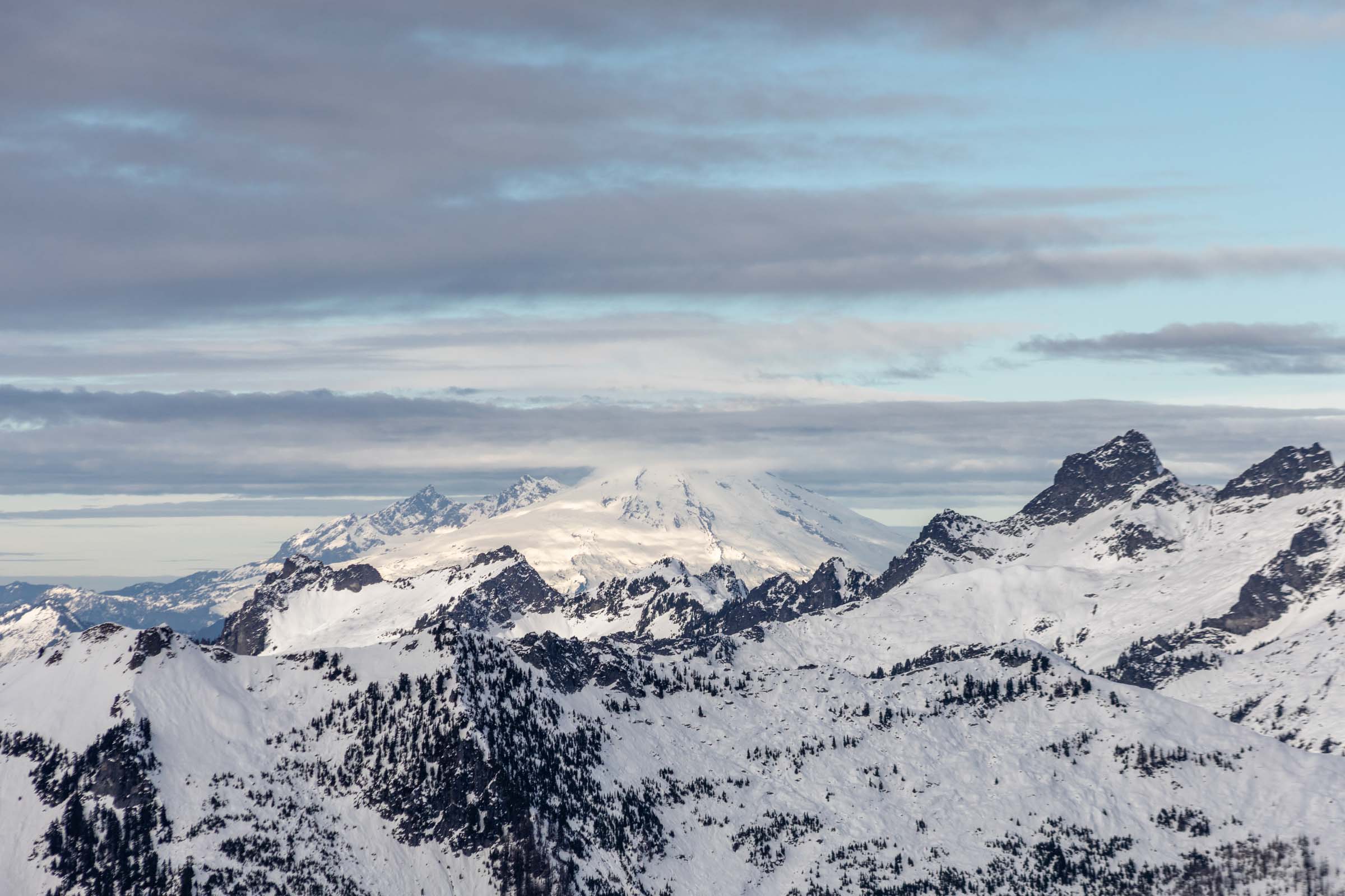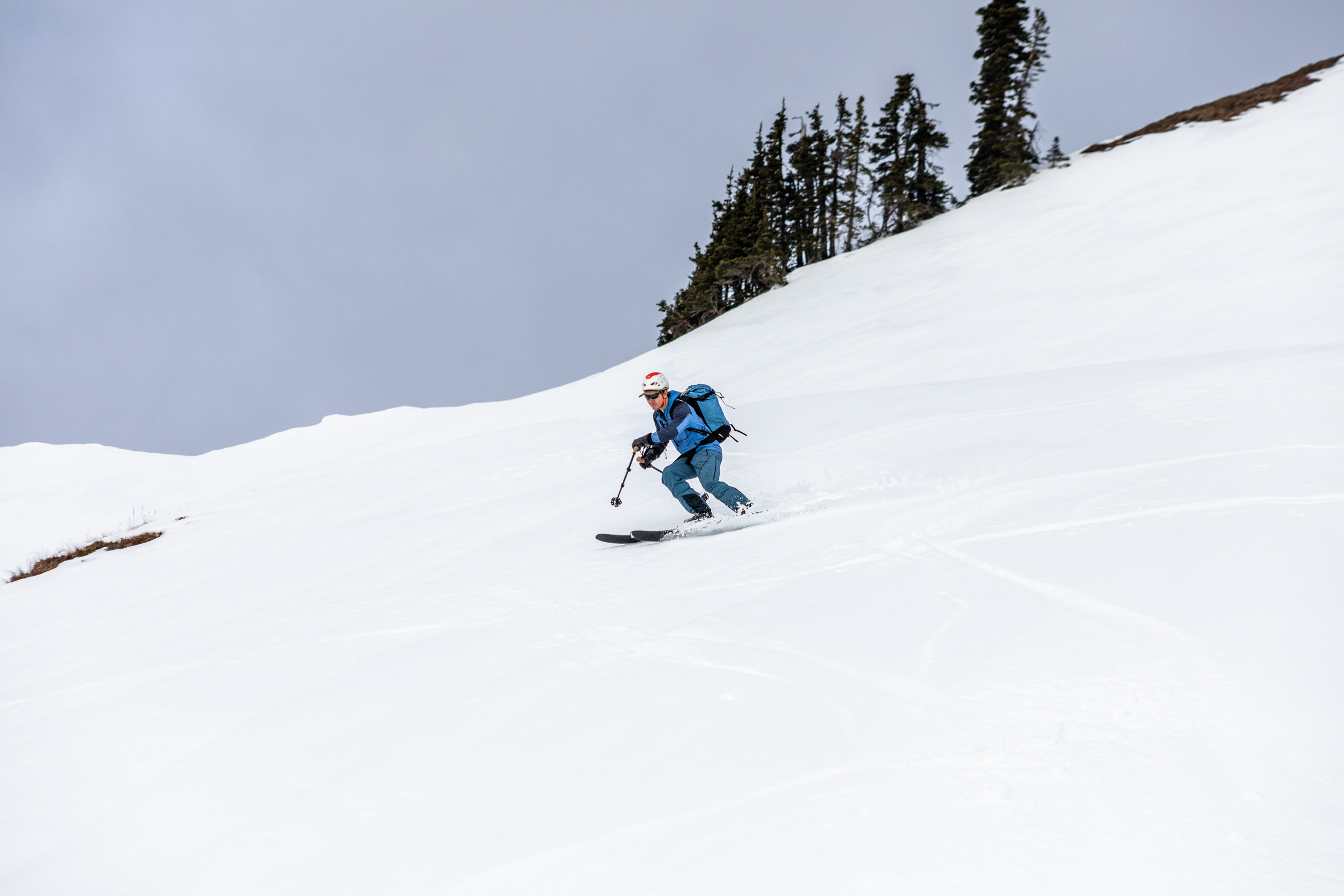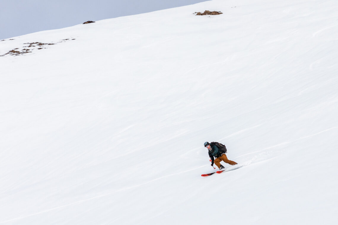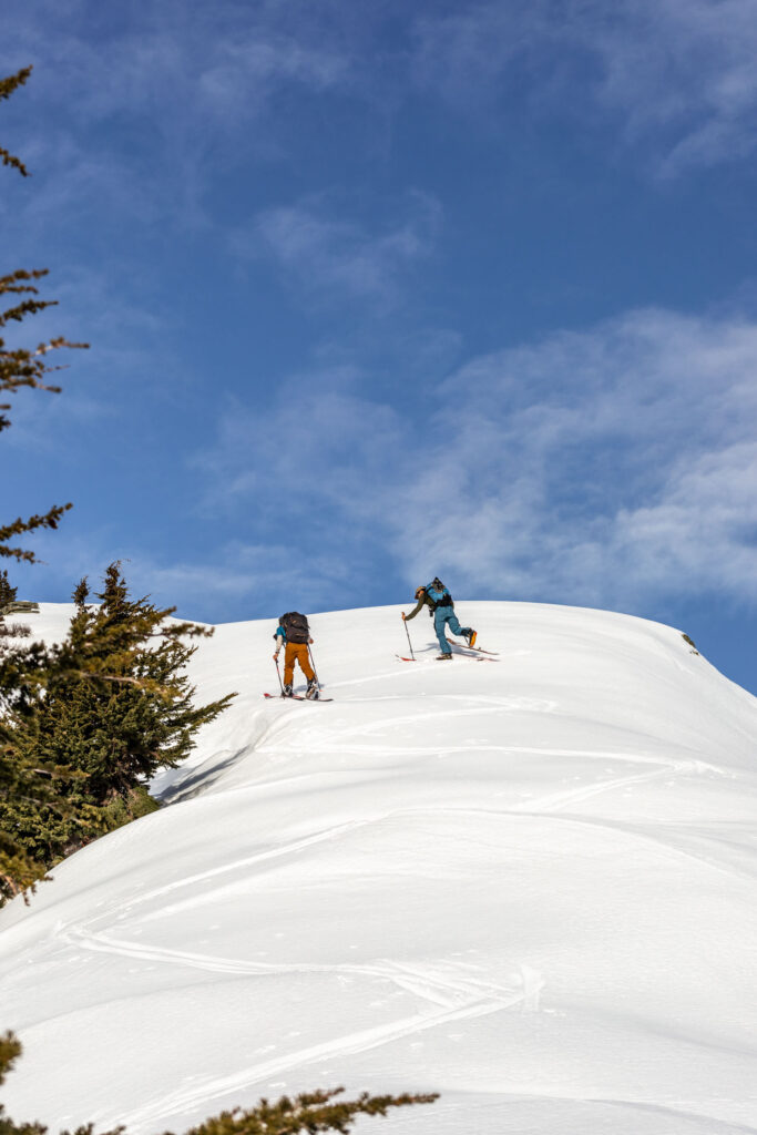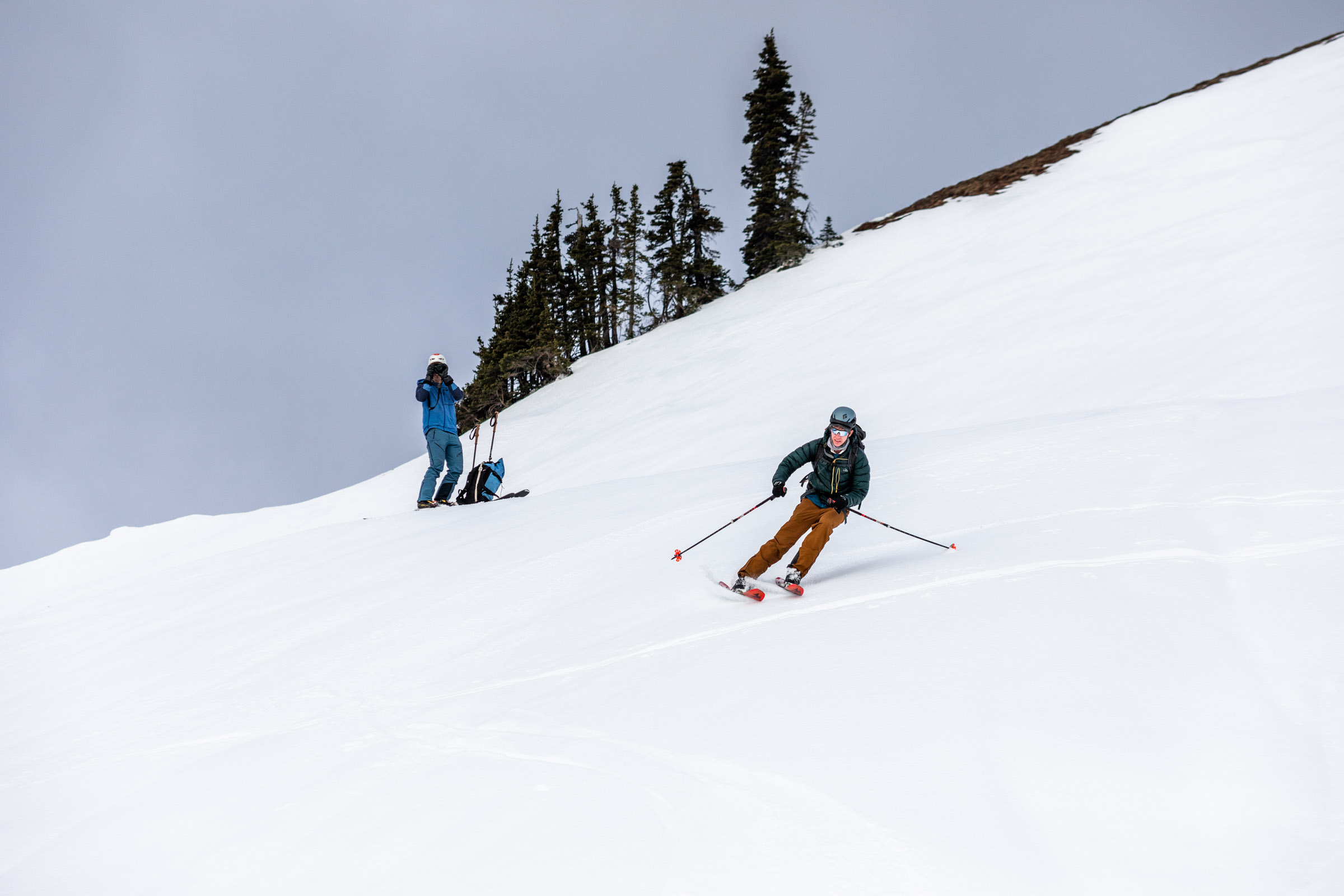 On the ridge, we made some tighter switchbacks, testing our kickturn skills right before the lookout. Shortly after we got relaxing and photo-taking at the lookout, the wind picked up, beckoning us to leave the summit sooner than expected. I only packed my long telephoto lens so I missed a few photos I would’ve taken, like completely forgetting the lookout. Oops! But the telephoto was incredible for capturing the skiing from a distance. I thought that the short ski down the open face was by far the most enjoyable I’ve had in a while and especially on a December backcountry ski day!