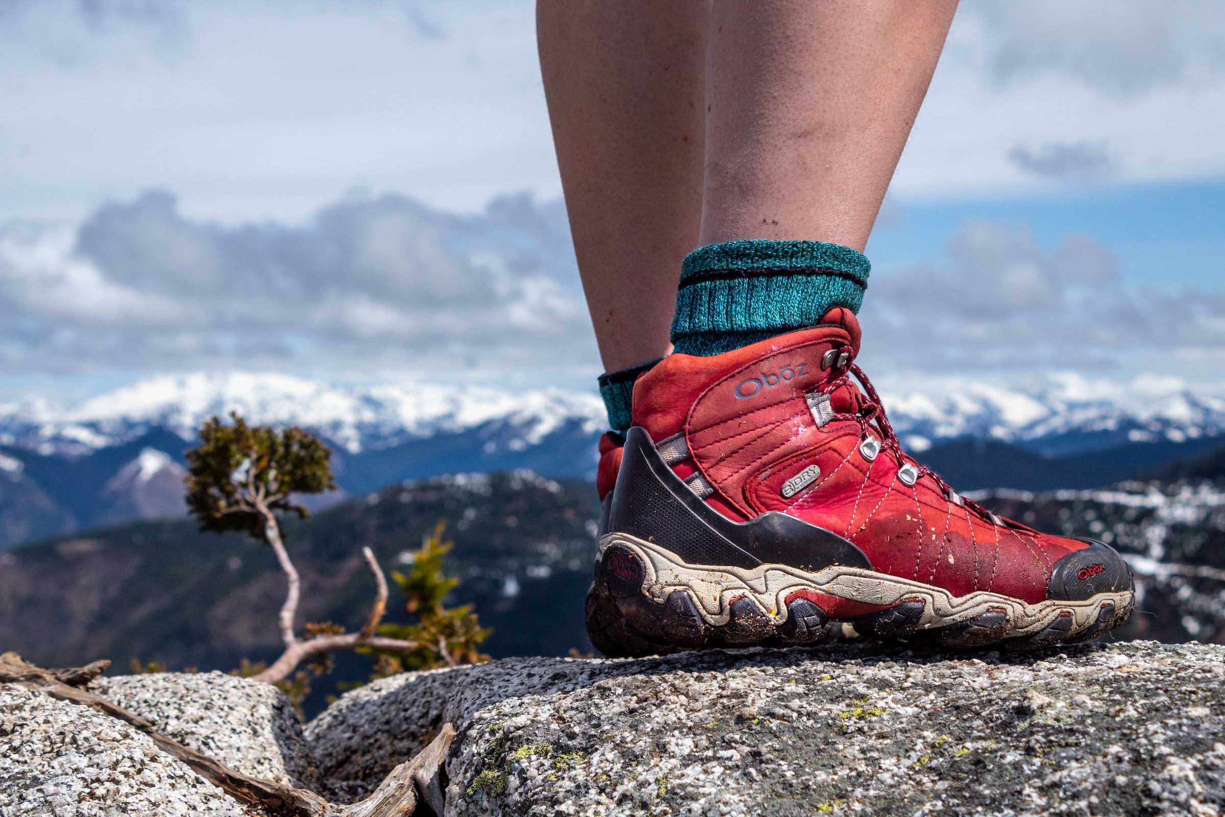 - Mountaineering Boots: Not necessary for the average hiker, but I take these on mountains where I think I’ll be on snow and rock. They’re waterproof and have excellent traction and stiffness, useful for alpine scrambles. The fit is tighter than hiking boots, so they’re not idea for normal hikes on dry, snow-free paths.