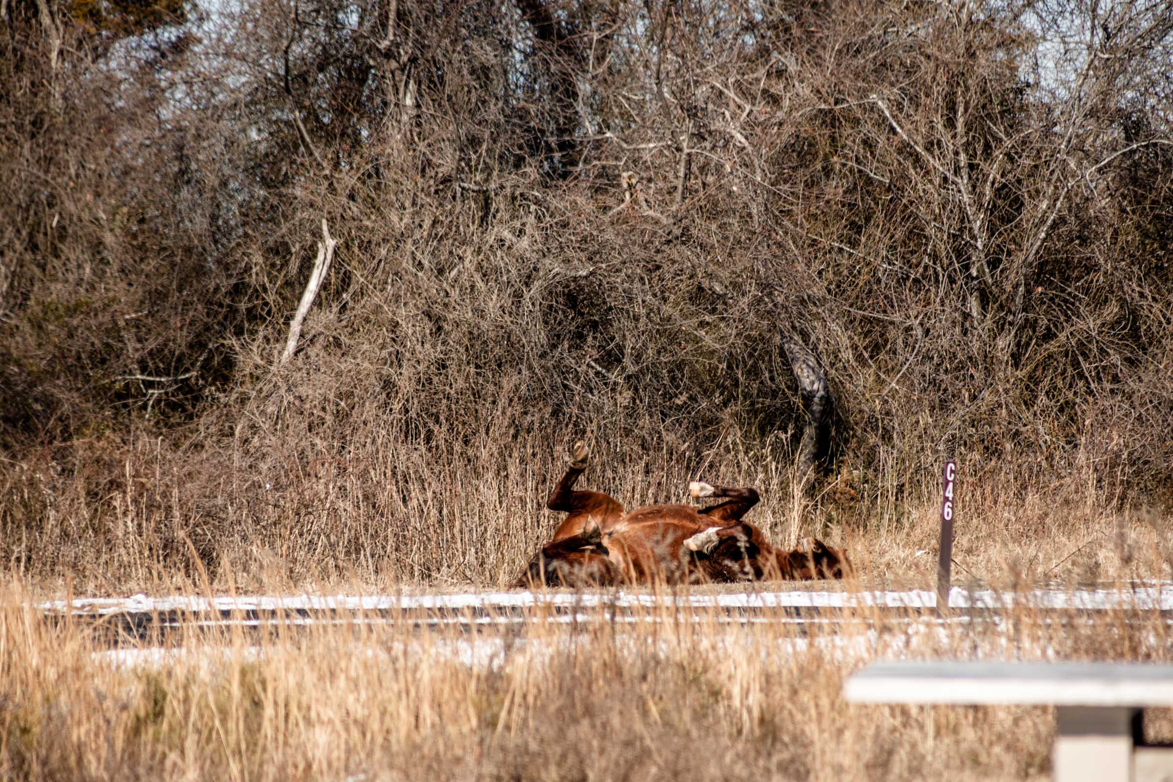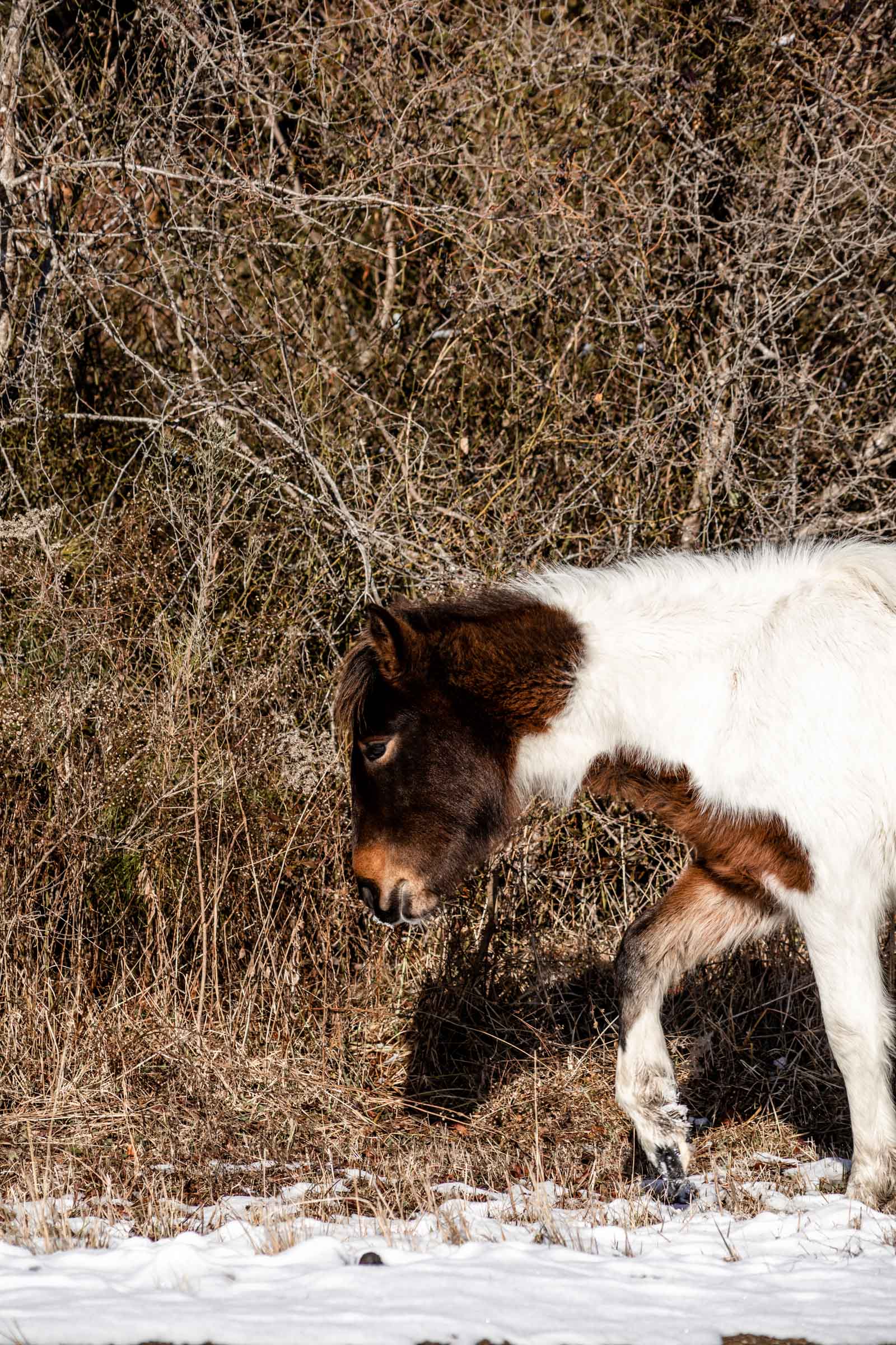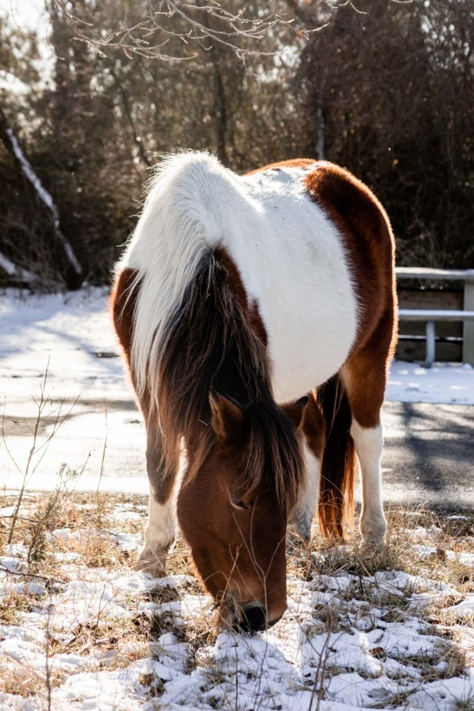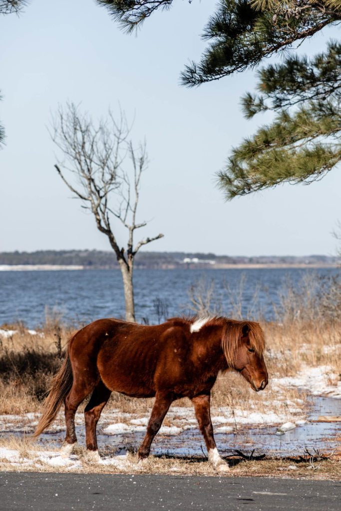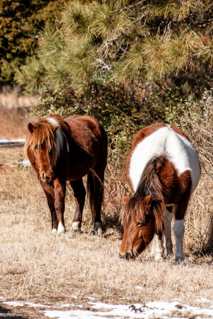 Entering from the north side, you also have the option to check out the Assateague State Park, which has different fees from the national park. There’s approximately 80 horses living on the Maryland side of the Island, so there’s a nontrivial chance of finding horses on your visit anywhere from before the park entrance to within the park. It’s always hard to guess where they may roam and it’s no guarantee if you’ll see any but I found evidence of them wandering to the beach even in the winter. But the only place I actually found them was by the marshes. There were a few groups but I only photographed the one here. It helps to drive through the campsites because they’ll find the quiet spots there too and not just on the short nature walks. And sometimes they’ll wander on the main road, so remember to drive slowly!