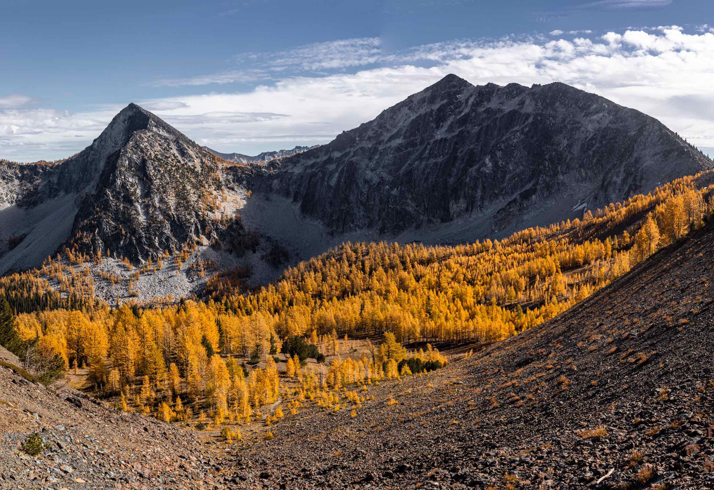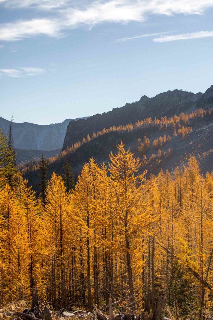Let me let you in on a little known secret: Just across the street from Rainy Pass is Cutthroat Pass and it has far more larches to wander through than Rainy Pass/Heather-Maple Loop and 99% of the time has fewer people on the trail. Similar elevation gain but overall, a fairly moderate hike. But if you’re looking for even more larches, read on or check out my blog on 20+ crowd-free larch hikes in Washington!