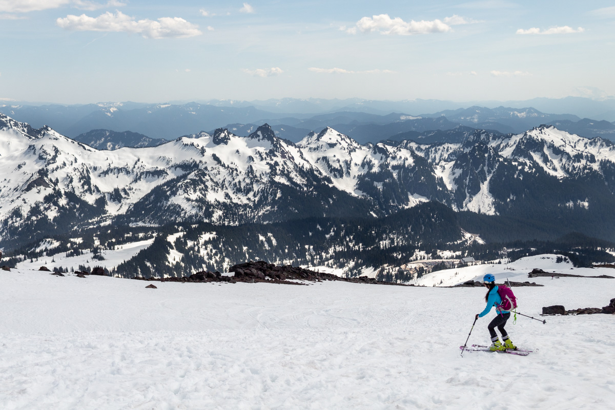 My next ski tour was the ever popular Camp Muir. It is often may people’s first big ski tour given how gentle the slopes are. It’s a snowfield so there’s low risk in falling down the holes of the usual crevasses in glaciers and low risk in avalanche terrain for the most part. So even without avalanche training, it’s one of the safer places to go for a beginner, not to say it is without risks. Depending how choppy or icy the snow is, it’s generally a solid blue run all the way down to the car (minus the steep Panorama Point, I almost cried there). This tour was so much more pleasant than my first experience. And I was proud of myself for completing a relatively long tour. My technique was horrible but there was a huge sense of enjoyment and satisfaction.