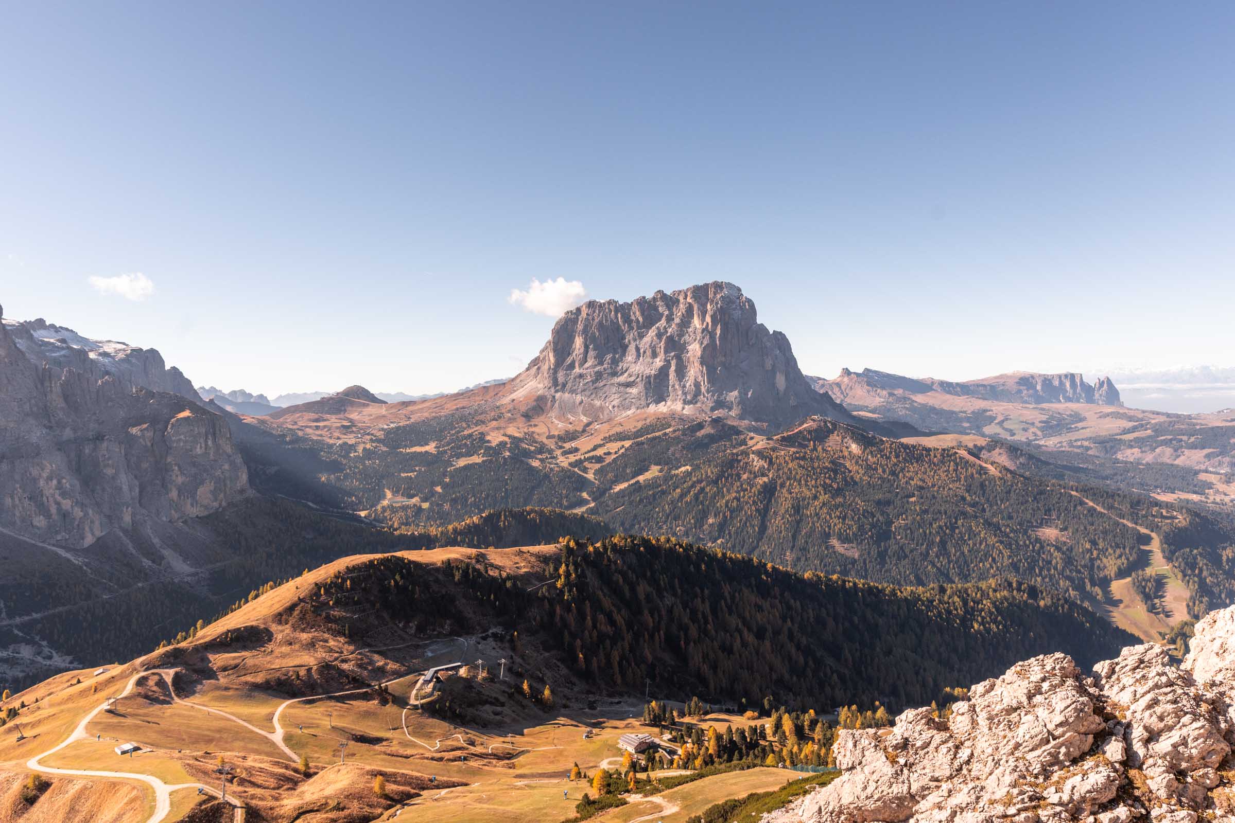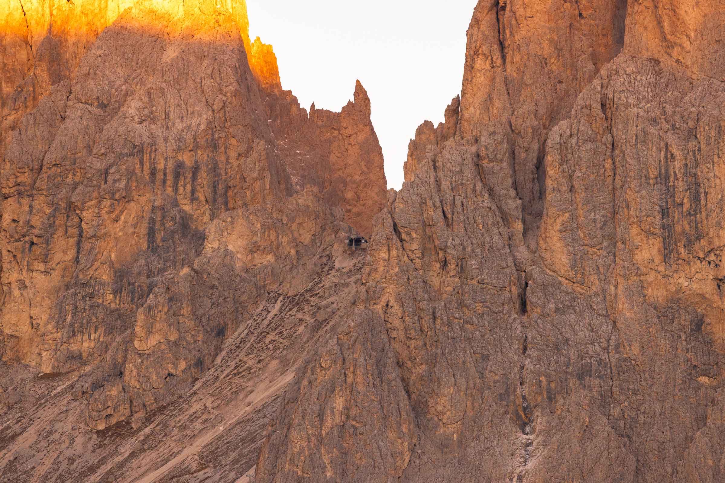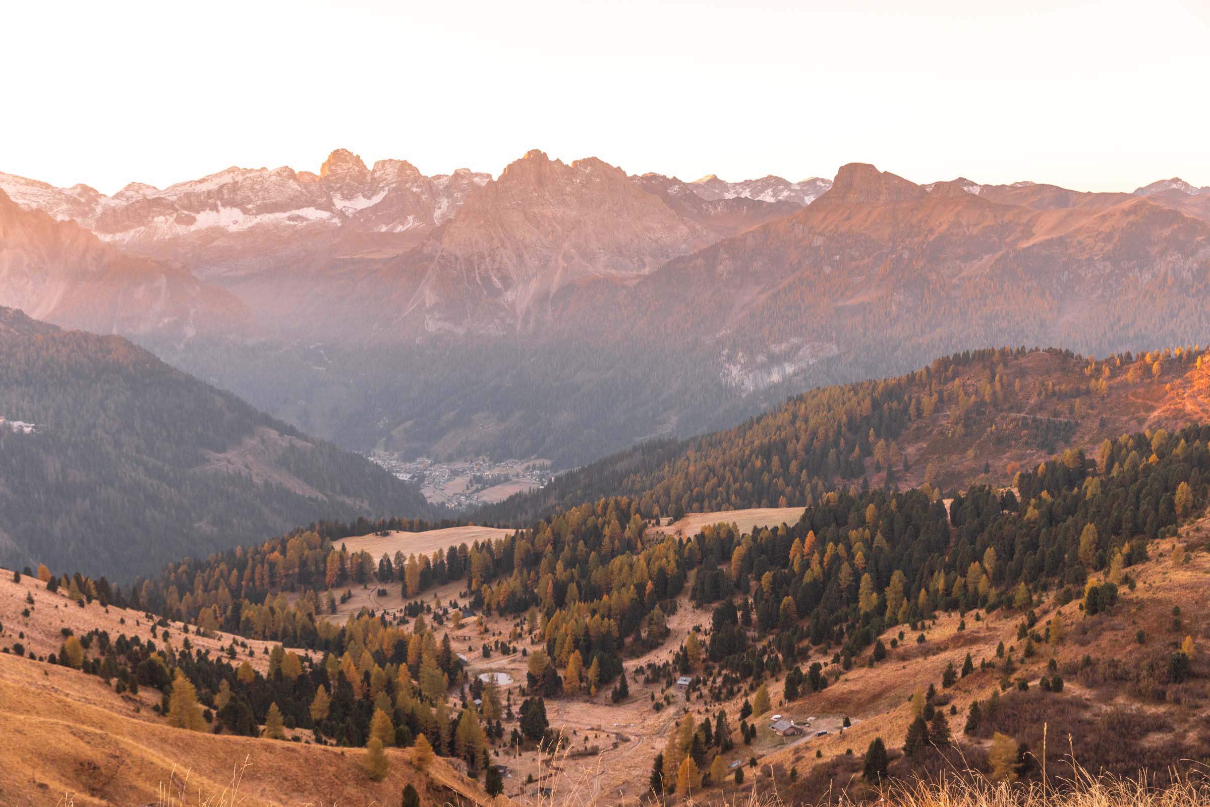 Sassolungo is technically a different mountain group. I guess a sub-sub-group. It sits on the east side of Seiseralm but you can get a glorious sunrise from Passo Sella, the alpine pass between Piz Boè and Sassolungo. I stayed at Hotel Mariaflora for an easy wake up and almost missed check in since we got dinner after a sunset hike of Seceda. I wasn’t sure about this hotel, but I highly recommend for incredible views of the valley below.