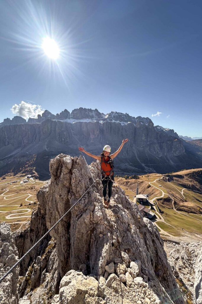 While I largely followed my detailed itinerary (I love to plan), there were a few moments of changed plans and the biggest change was which day to do the via ferrata by Piz Boè. There was a local festival that closed all shops early so we couldn’t do our initial plan and ended up on the late evening hike of Seceda. So we swapped itineraries and this day, we were able to rent via ferrata gear. I found it interesting that Cortina had much more options to rent via ferrata gear and here, it was limited and they had just increased their inventory 3-5x due to American tourists.