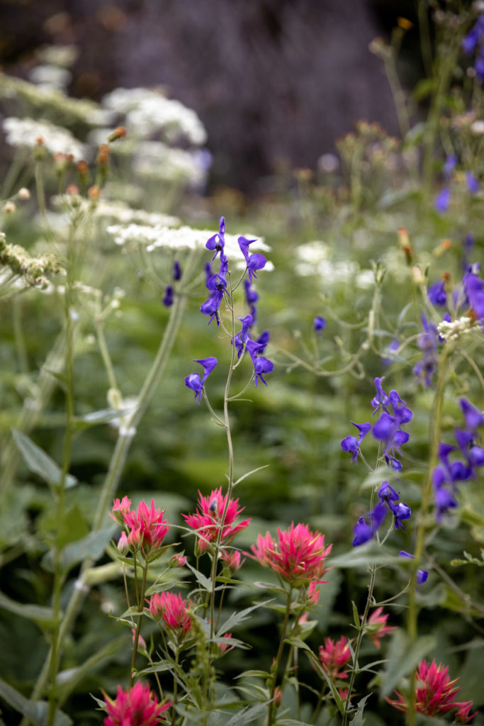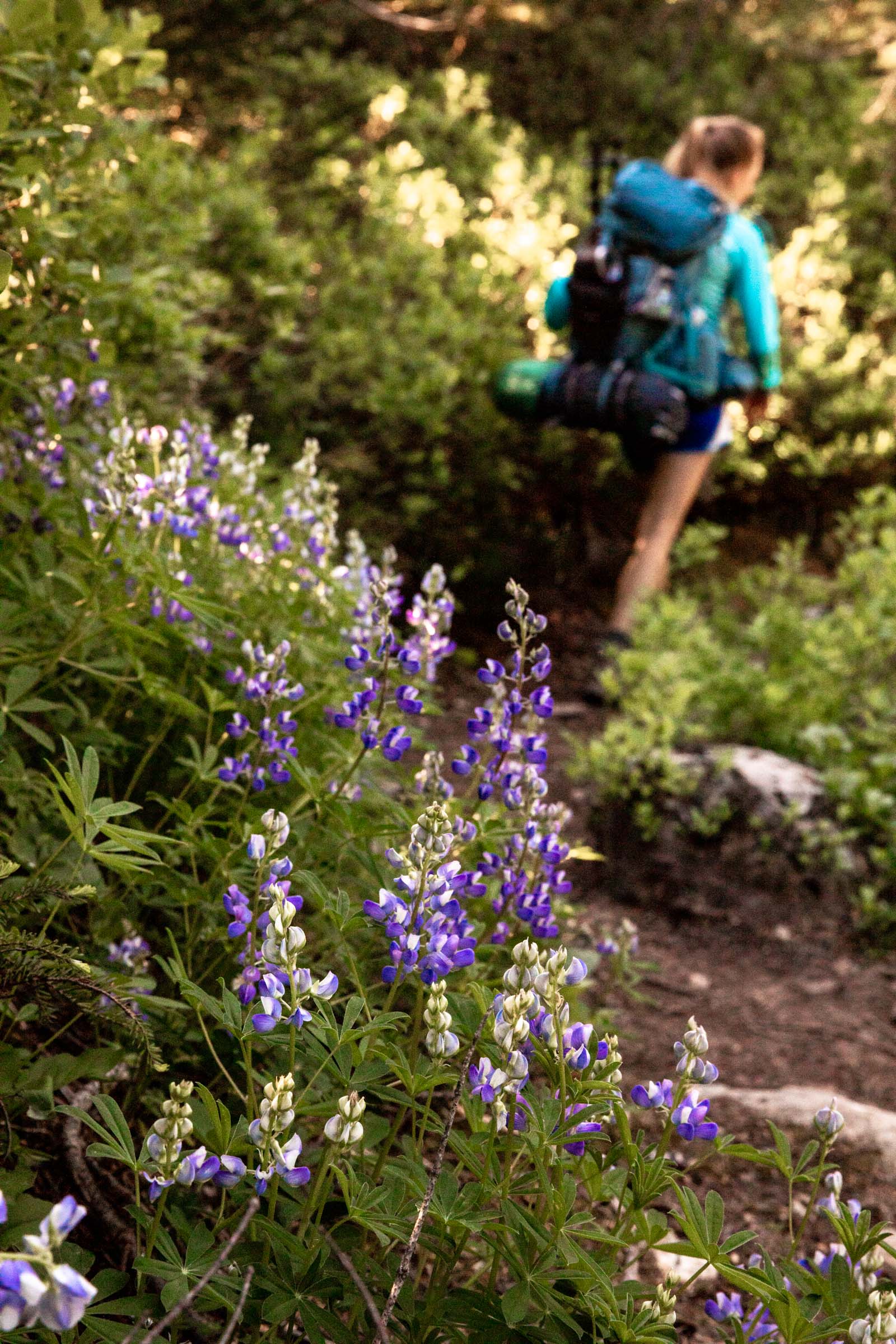 We set off on Friday, just as another trip report came in to confirm that Jade Lake would be snow free. We were ecstatic! Note: I think many people expected the lake to melt out so there were overall fewer people on trail than we expected. Which is great, considering this is one of the most popular backpacking destinations. We got to the large trailhead and there were already quite a few cars. We left after work in hopes of getting an early start on Saturday and camping an extra night a couple miles further in. We quickly were surrounded by wildflowers at the beginning of the hike and I gladly took caboose to give myself a little more time to snap a few extra photos before catching up with everyone.