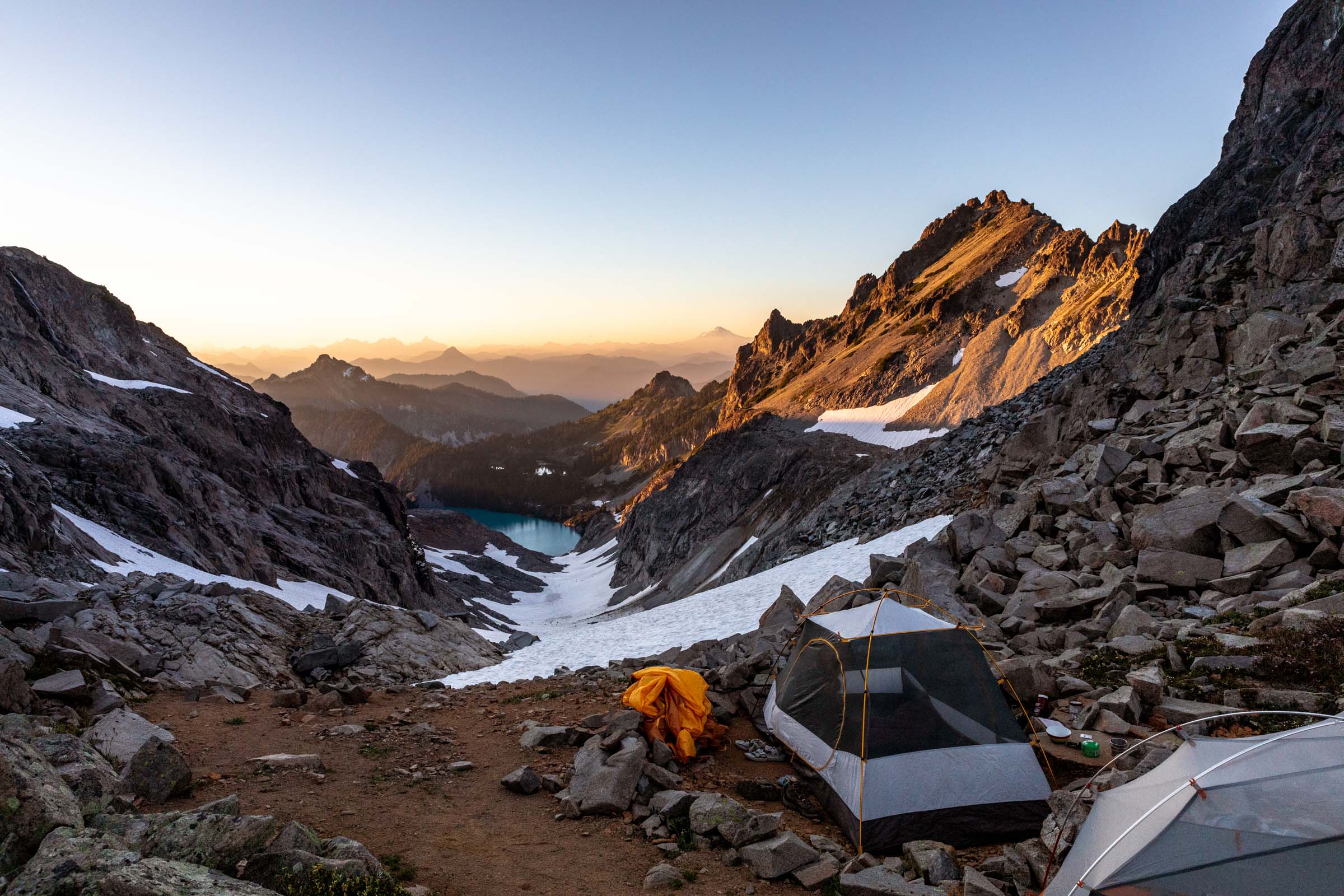 Even after dinner and setting up the tent, we had some time to kill before the light show. And it was quite the light show, but not what I envisioned. Mt Daniel was pretty but I think the northerly mountains took the spotlight. With the layers of mountains and the vivid colors in the distance, I couldn’t stop taking pictures of the same thing. Looking back, I wish I’d scramble one of the peaks, but I’m still very content with the views we got at camp. It was just exactly what I needed to fill my cup of alpine sunsets.