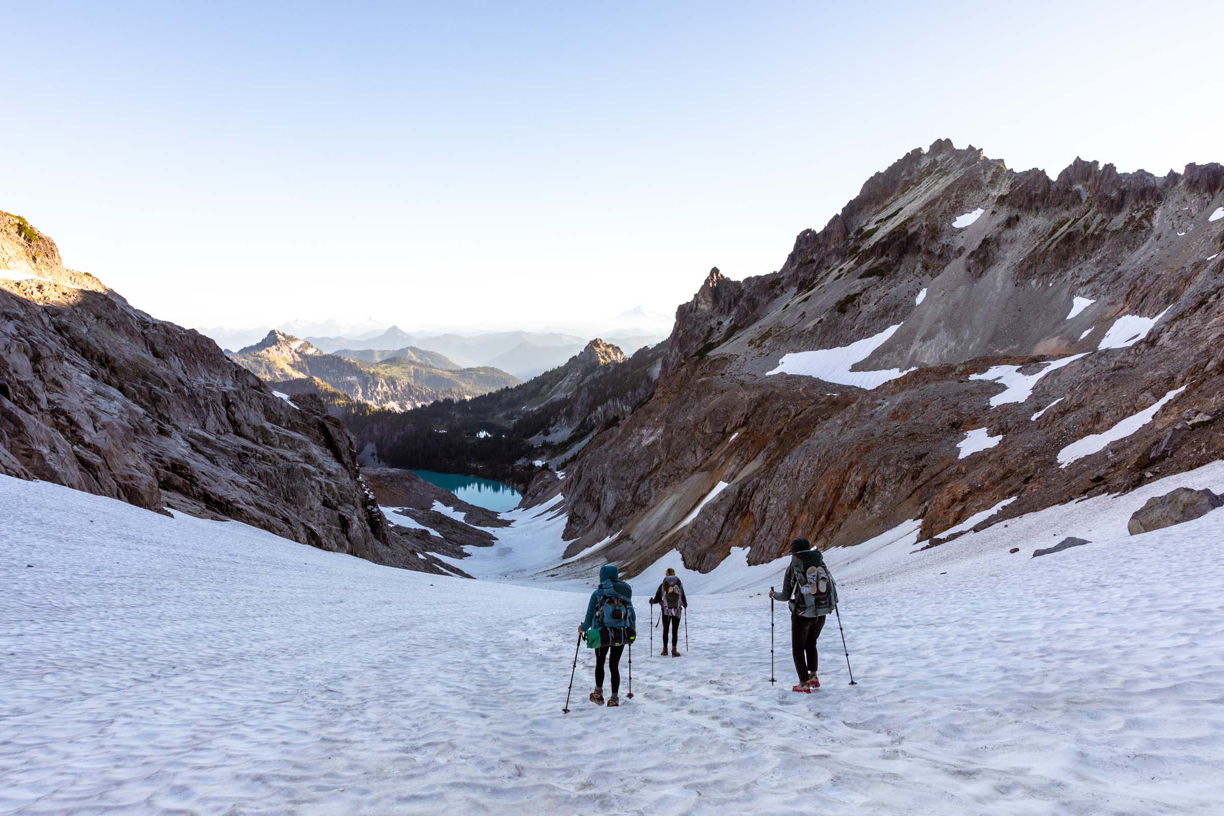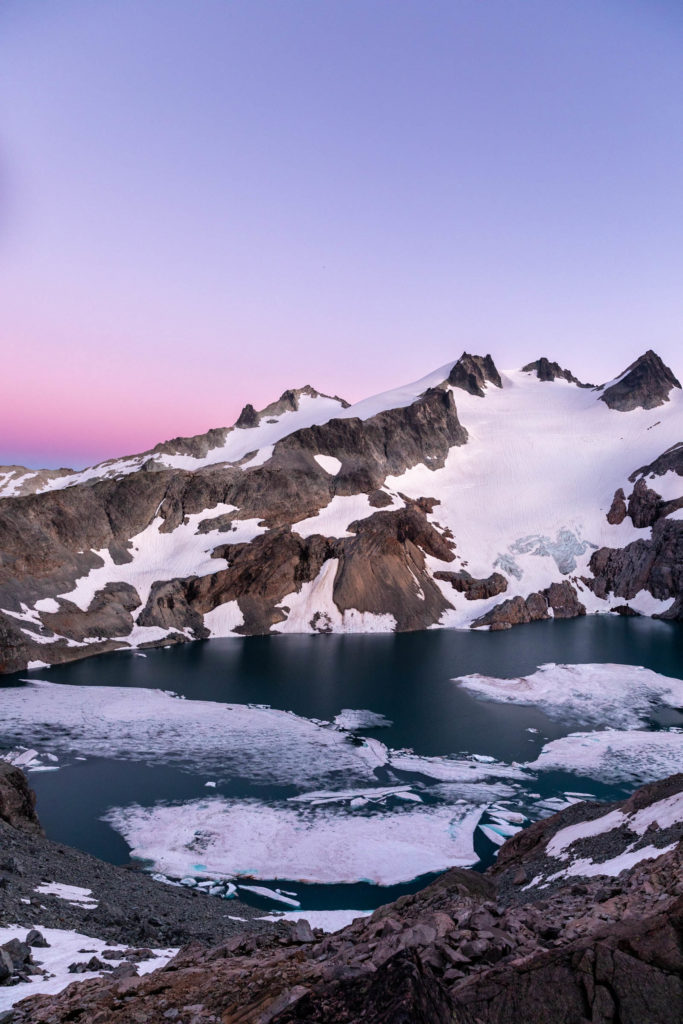 After a short amount of sleep, I woke up to my alarm letting me know that I needed to get up soon for the morning light show. Slowly, everyone else started to get out of the tents and we quietly watched the sunlight hit Mt Daniel. I think the morning alpenglow was prettier but the sunset fire-like glows were better than the morning version. We had a long day ahead of us so we didn’t take a nap before heading back down. Surprisingly, the snow was the perfect amount of firm but soft enough to prevent a slippery mess. We snuck past a few camps that had just begun rustle. With one stop to filter water, we were all go, no stop back to the trailhead, save a few snack breaks here and there. It was long, but yet again, the longest section was the last mile out. That seemed to linger forever and the previous 10+ miles just flew by.
