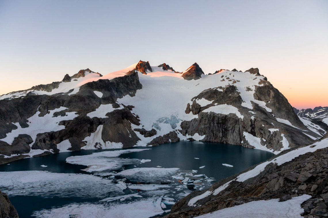 Going down Salmon La Sac Road, you’ll find yourself at the trailhead of two amazing backpacking destinations both boasting at least 3 large alpine lakes each with views of Mt Daniel should you choose the full routes. I checked the first one off during Kelsey’s first backpacking trip to Tuck and Robin Lakes. This was two years ago. Both of them have come a long ways, having backpacked to many more places that I’ve yet to see for myself! I’m so amazed by how they’ve fully embraced living in the PNW and have had so much fun on these trips, exploring the beauty that this region has to offer. Literally the best feeling seeing your friends enjoy the same things as you and going from novice to doing it all on their own! Anyway, enough of an introduction. But Jade Lake has been one of the highest priorities of my backpacking list. Jade Lake is one of those alpine lakes with the more green tone to it. The kind that people will literally hike miles past other lakes just to see it in person. I wanted a bit more. I want to say I was allured by Sonja Saxe’s image of Daniel over Pea Soup Lake, but it could have been some other time, but I was set on seeing this lake, a bit past Jade Lake, requiring a bit more route finding and snow travel skills.