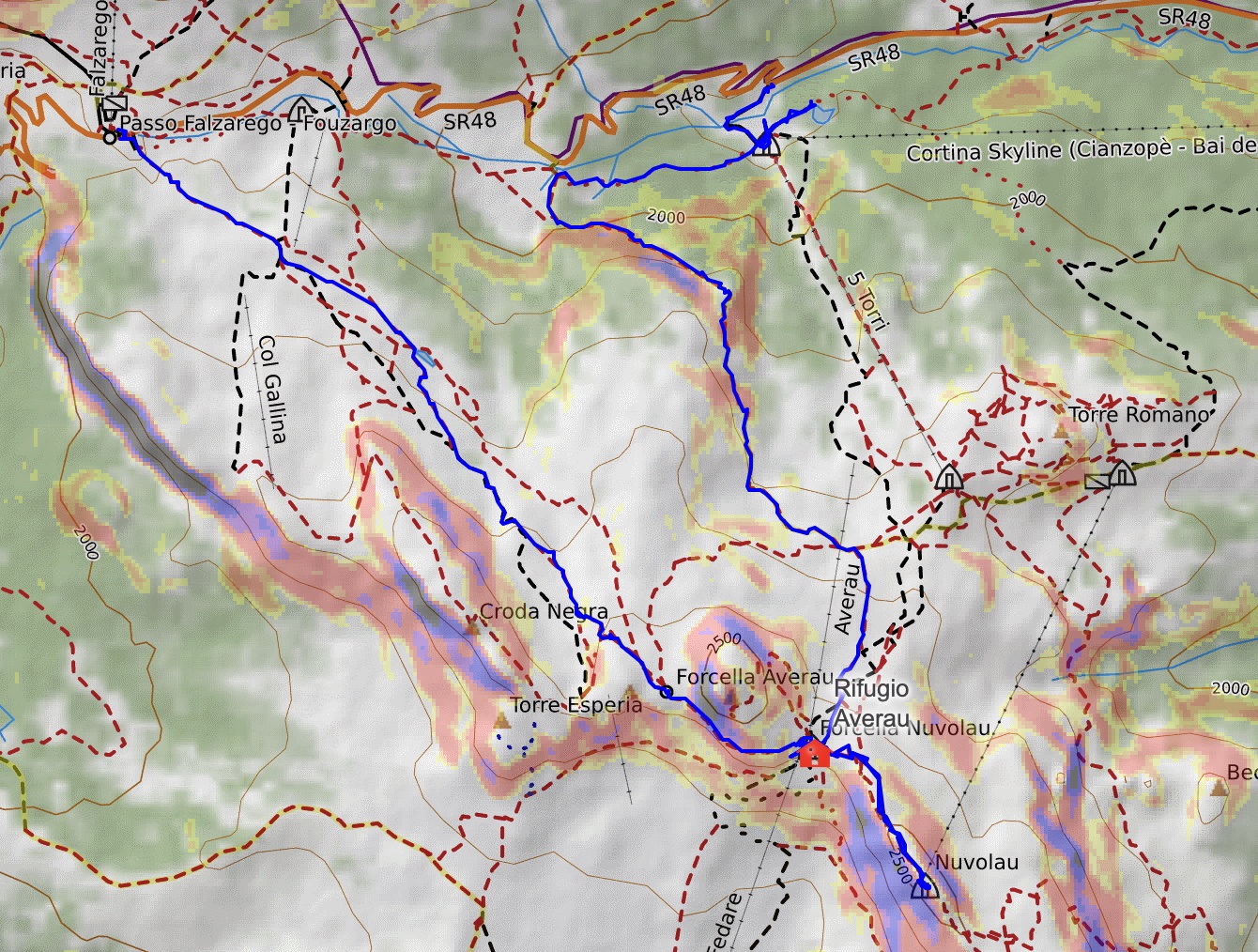 - If you’re traveling by public transportation in the summer, the Dolomiti Bus is reliable, but you’ll have to plan around their schedule. For most things out of Cortina, bus 30/31 is great for going between town and Tre Cime to the east or Passo Falzarego to the west. Take note of their weekend/holiday vs weekday schedule. I got off at Passo Falzarego but you could also get off earlier at Rifugio Baita Bai de Dones or any of the other many trailheads south of SR 48.