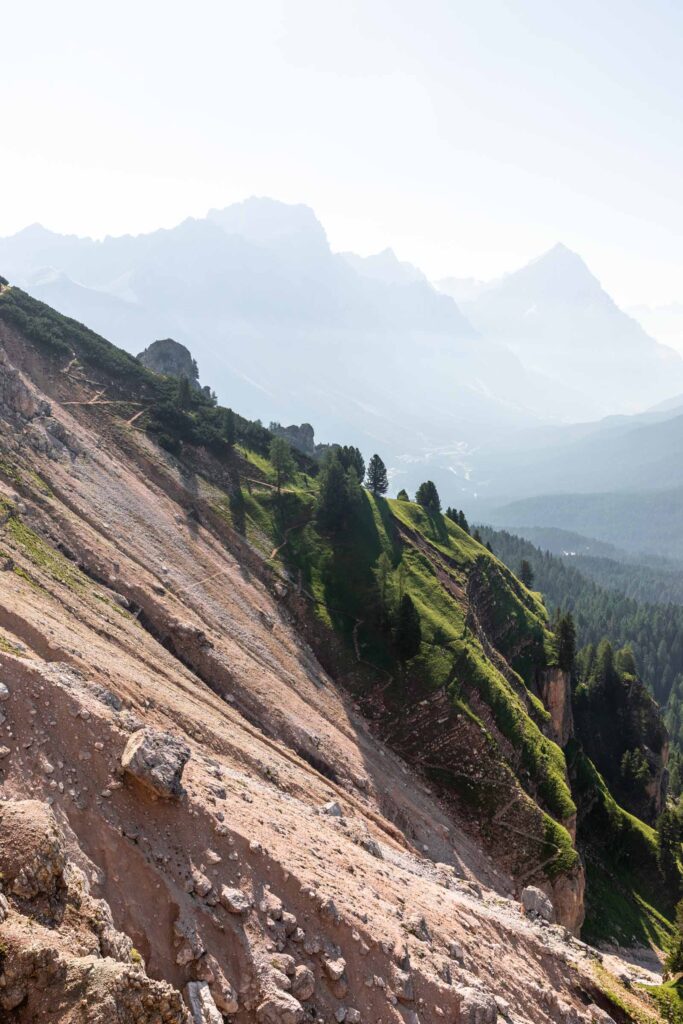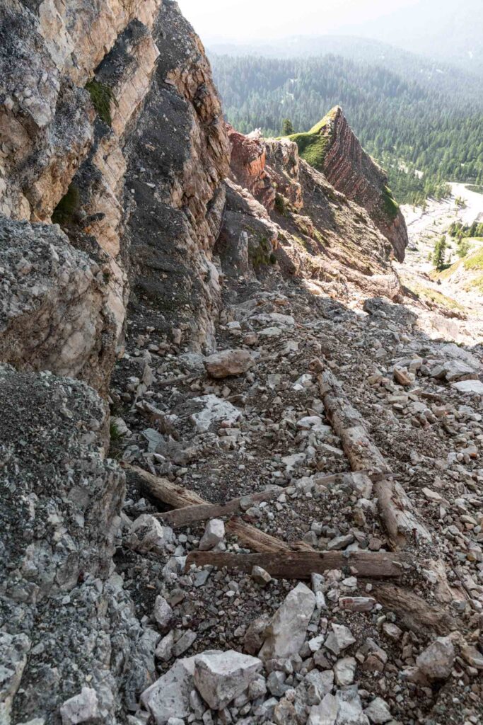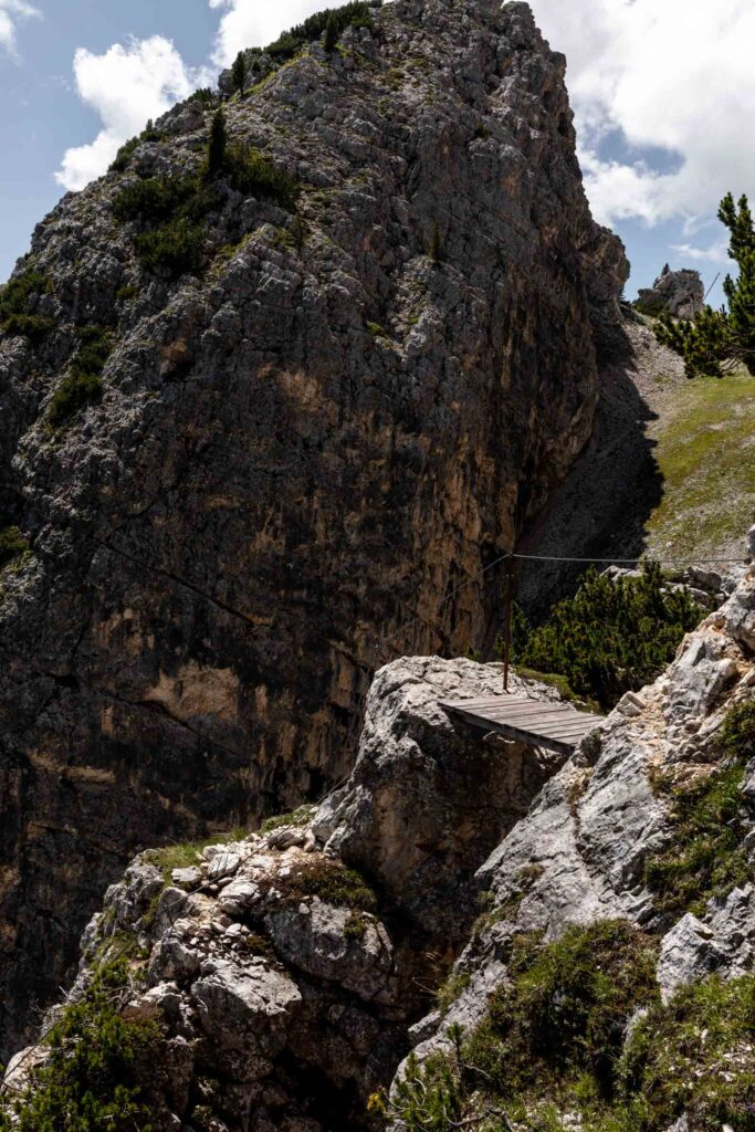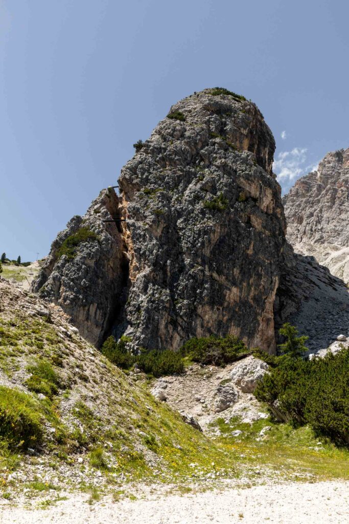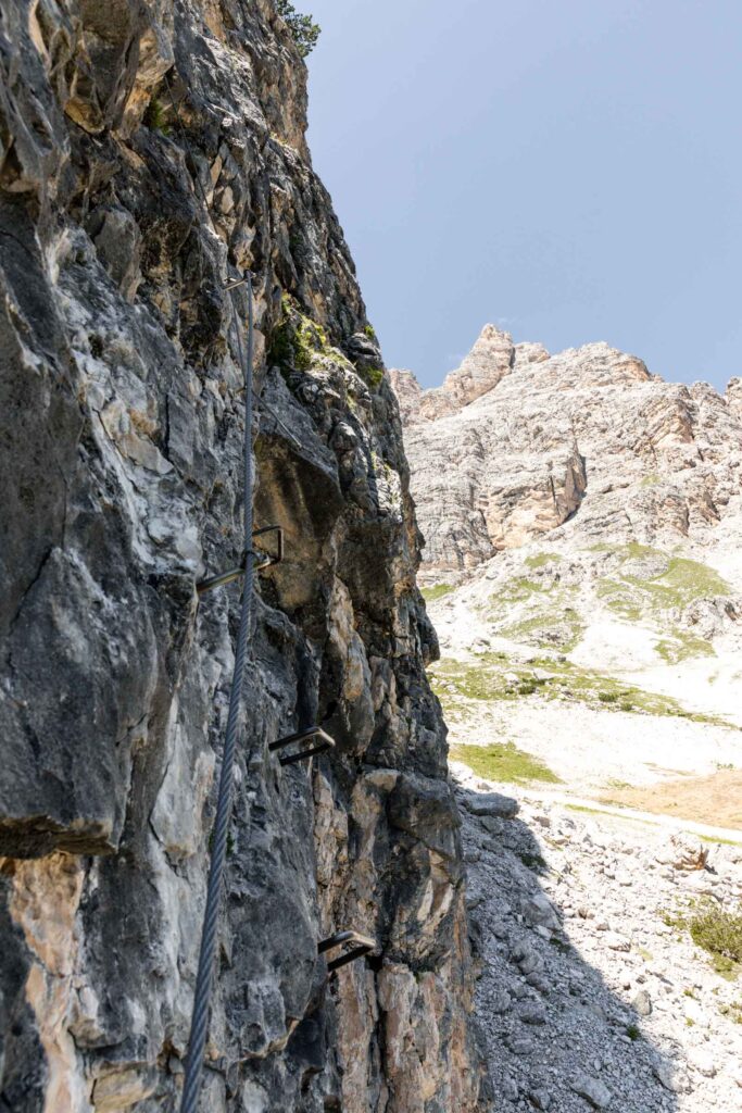 After my long day on the Ivano Dibona via ferrata and a hike to Lago di Sorapis, I was quite tired and didn’t want to push my physical limits after being quite exhausted, especially while adventuring solo. There’s risks I’m willing to take by myself and ones I feel more confident pushing further when I’m with other people. And while I originally intended an ambitious back-to-back major via ferrata trip, the Punta Anna seemed a bit too daunting when I wasn’t in the right mental headspace for it. Obviously I knew I had the skills and strength, but it’s another aspect to think about if you’re mentally ready to tackle something on your own. Luckily, the maps for Cortina are well marked and I soon discovered a short via ferrata that would take me to my next hut, Rifugio Pomedes. Upon research, I found two different routes but decided on the Via Ferrata Ra Bujela because it was more popular and seemed fun. The other route, Ra Pegna can be tagged along with it for a slightly easier climb as a warm up or cool down.