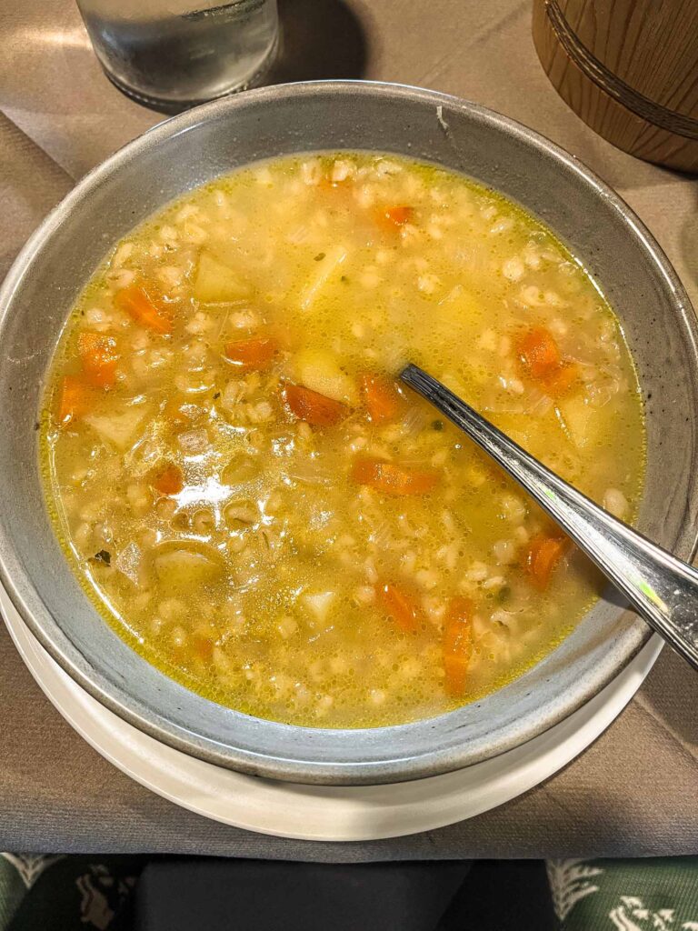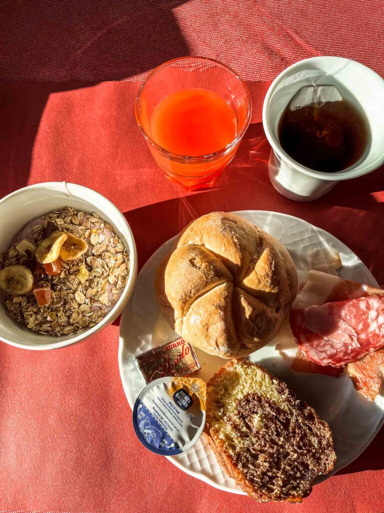 Eventually I caught up to the American couple and we had a good chat and relaxed break just as we were topping out the end of the via ferrata. They were to head down, but I had gotten to my next stop rather early. I enjoyed reading up routes and chatting with both the couple and some Germans on vacation. It was nice sharing stories and simply seeing what life is like for other people. I was so thirsty, I ordered an orange carrot juice, which was so delicious – you must try it! Eventually the day hikers left and my Rifugio Pomedes roommates started arriving. It’s often a bit awkward sitting by yourself at a table for one when they assign you seats. It’s as if they assume you wouldn’t want to talk to anyone else. Thankfully at dinner, I was able to chat more with a Swiss couple who I ran into the next day in town! Super fun!