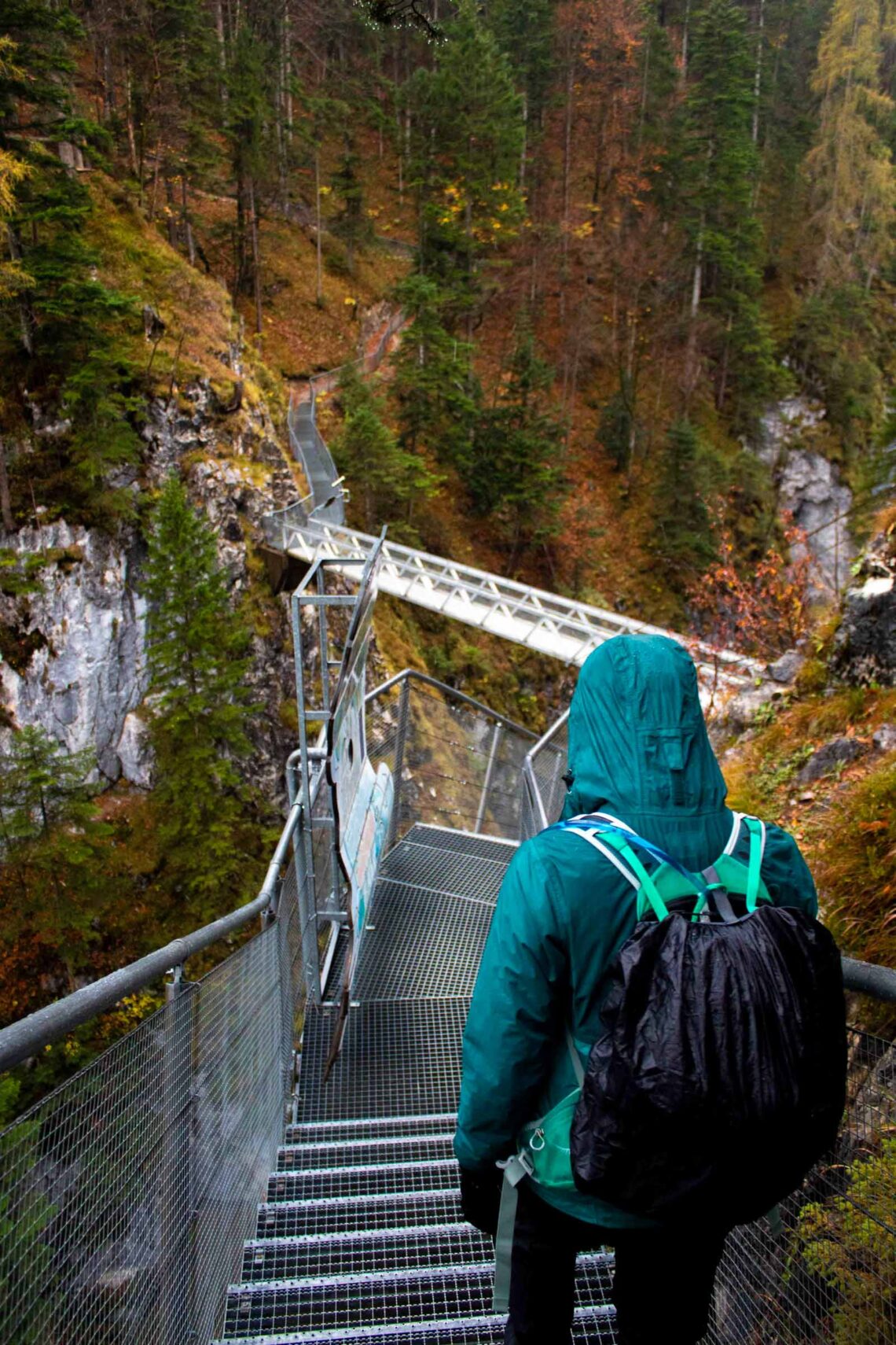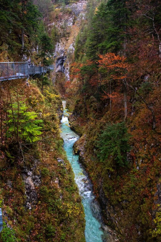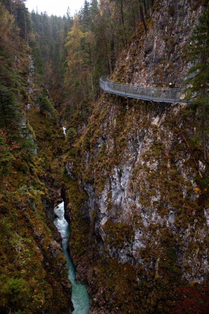 When I was traveling around Europe, I figured I should probably visit Germany. But as a person who gets stoked on mountains more than cities, I made an effort to find an easily accessible German town with hikes on the way to the Italian Dolomites, and Mittenwald was the perfect spot. We were teetering between fall and winter so weather was not cooperating. We had to deal with the rain the whole time during our visit and I even waterlogged my camera, but it cleared up right as we got to the main part of the gorge. But the fall colors were absolutely wonderful! Coming from the state of Washington, any amount of fall colors makes me happy! And one of the coolest parts of the gorge walk is that you cross the line between Germany and Austria, so if you want to check off countries to visit, a hike like this is perfect!